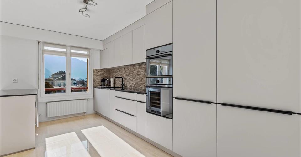 Bel appartement spacieux de 6.5 pièces de 175m2 au 8ème étage. Bel immeuble situé au coeur de Montreux. Cette commune attractive dispose d’un grand nombre d’atouts avec ses surfaces commerciales, sa place du marché et ses activités, les magnifiques quais du bord du lac, de nombreux transports publics, les écoles publiques obligatoires ainsi que plusieurs écoles privées. Elle accueille également de grandes manifestations reconnues telles que le Marché de Noël et le Montreux Jazz Festival. Bel appartement spacieux de 6.5 pièces de 175m2 au 8ème étage composé comme suit : – Un séjour avec un accès terrasse vue sur le lac. – Une cuisine séparée et entièrement équipée avec une cave à vin. – 3 chambres avec 3 salle de bains et 2 balcon privatif. – Un espace buanderie. – Un accès direct au rooftop avec une vue splendide sur Montreux, le lac et les montagnes. Une place de parc en extérieur est disponible pour CHF 80.00 par mois. Le loyer est de CHF 7’000.00 charges comprises.