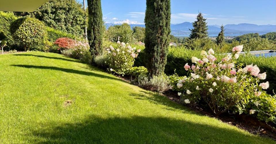 Très bel appartement, contemporain avec spacieuse terrasse (jacuzzi intégré), ayant comme atout un beau jardin, totalement privatif au niveau inférieur de 300 m2 en servitude d’usage exclusive). C’est un concept idéal entre maison et appartement, permettant une flexibilité d’entretien (charges PPE très raisonnable de 725.-/mois). Atouts de cet appartement : – Appartement avec indépendance d’une maison – Ascenseur privatif – Surface généreuse de 220 m² et 80 m² utile – Cuisine avec îlot central et Office – Trois chambres et trois salle d’eau – salle de jeux/fitness Et pour terminer une vue, absolument splendide sur le lac, les Alpes, tout en étant au calme et dans la verdure. Bien rare sur le marché!