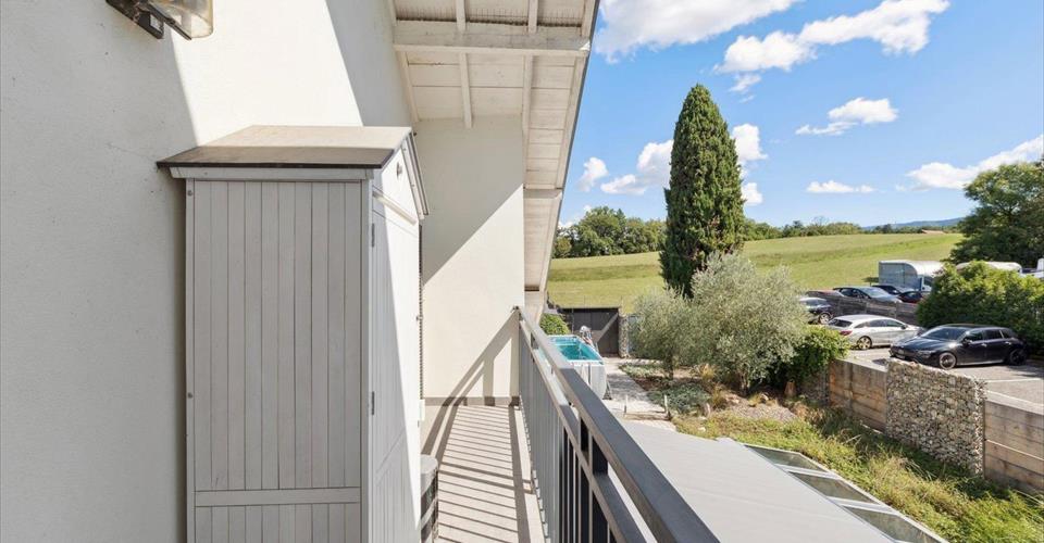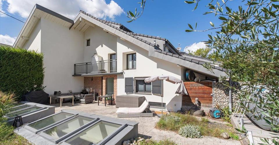 Situé à Bernex, au lieu-dit « Chèvres », ce magnifique appartement profite d’un cadre résidentiel recherché, alliant calme, verdure et proximité immédiate de Genève. Cet appartement de charme est niché au sein d’un ancien corps de ferme, entièrement rénové en 2014 et divisé en seulement deux logements sous le régime PPE. Il profite d’une généreuse surface PPE de 248 m² ainsi que d’un balcon de 7 m² répartis sur quatre niveaux. Ce bien rare séduit par ses volumes, sa luminosité et ses prestations de qualité. Distribution intérieure : Rez-inférieur : cuisine moderne ouverte sur un vaste séjour/salle à manger baigné de lumière grâce aux verrières motorisées avec capteurs de pluie, buanderie, réduit et carnotzet actuellement aménagé en chambre à coucher avec salle de bains attenante. Rez-de-chaussée (niveau de l’entrée) : grand hall d’entrée agrémenté de nombreux placards intégrés, WC visiteurs avec espace rangements ainsi qu’une chambre à coucher avec salle d’eau privative. Premier étage : superbe suite parentale avec salle de douche complète et accès au balcon orienté Sud-Est. Combles : troisième chambre à coucher avec salle de douche attenante. À cela s’ajoute une magnifique terrasse prolongée par un jardin joliment arboré et aménagé, offrant une surface totale de 229 m², idéal pour profiter des beaux jours en toute tranquillité. L’appartement dispose également de 3 places de parking privatives ainsi que de nombreux emplacements visiteurs. Ce bien rare est une opportunité idéale pour une famille en quête d’espace, de confort et d’authenticité, à seulement quelques minutes du centre de Genève. A visiter sans tarder ! Calculs de pondération : Sous-sol : 107 m² à 50% ? 53,50 m² Rez-de-chaussée : 61 m² à 100% ? 61 m² 1er étage : 55 m² à 100% + balcon de 7 m² à 50% (3,50 m²) ? 58,50 m² Combles : 25 m² à 50% ? 12,50 m² Jardin / terrasse : 229 m² à 10% ? 22,90 m² Total surface pondérée : 208,40 m²