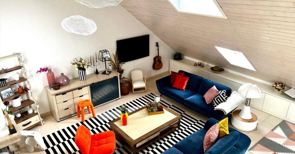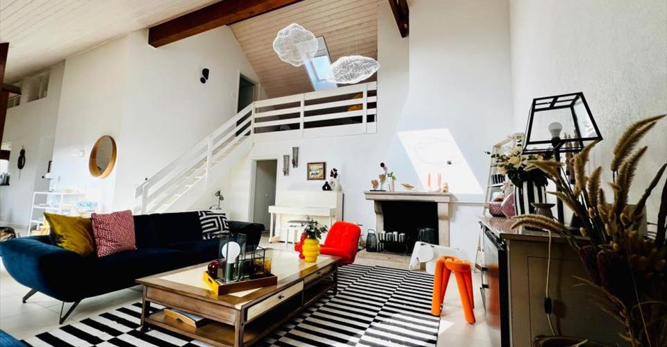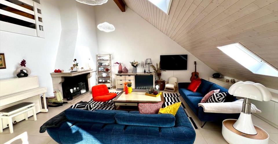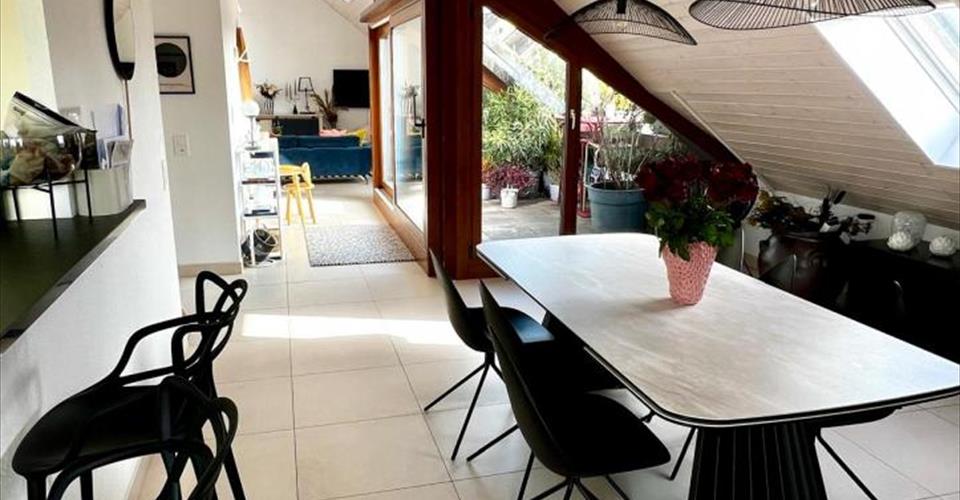 A saisir !! Duplex en attique avec grands volumes dans un quartier totalement hors-nuisance. Spacieux séjour lumineux orienté plein SUD avec cheminée et terrasse, 4 chambres à coucher dont 1 parentale, 2 salles de bains. 1 galerie. 2 places de parking comprises.