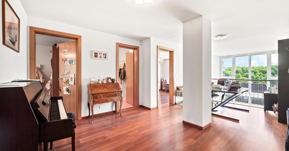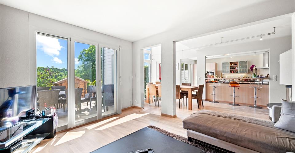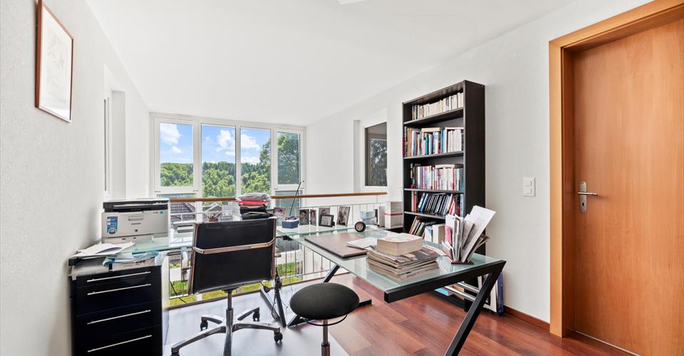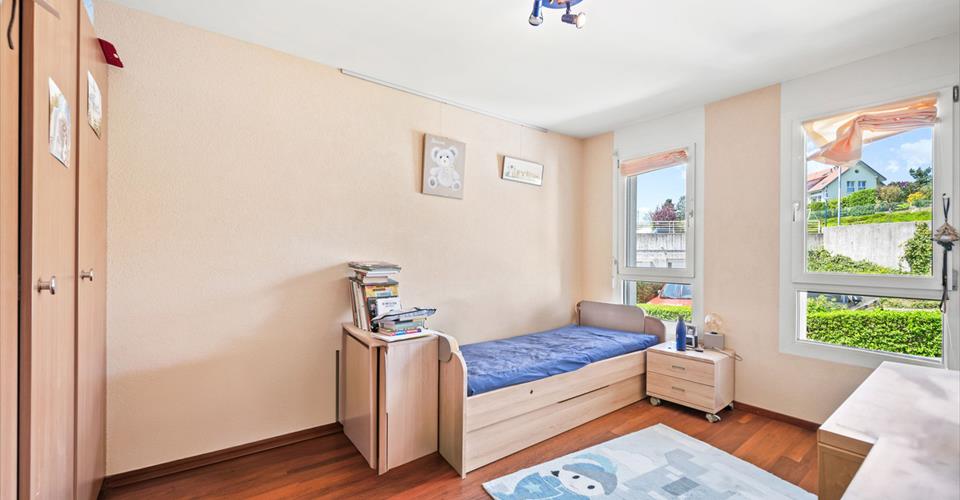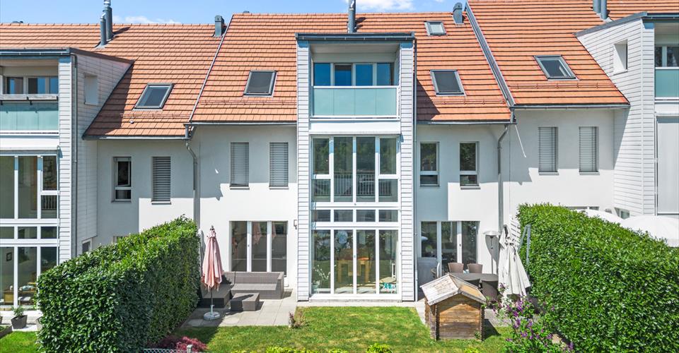 Située à Epalinges, entre l’Ecole Hôtelière de Lausanne et toutes les commodités du centre du village, cette townhouse construite en 2004 et en parfait état propose environ 190m2 habitables, une cave, un garage ainsi qu’un petit jardin privatif. L’entrée se trouve au rez-supérieur de la maison. Elle s’ouvre sur un escalier permettant aux visiteurs de se rendre directement aux espaces de vie situés en rez-rinférieur où l’on trouve un vaste espace salon- salle à manger éclairé par un très beau bow-window et doté d’une double hauteur sous plafond. La cuisine jouit également très agréable luminosité grâce à cette large surface vitrée et ouvre, comme les autres pièces sur une agréable terrasse ainsi qu’un petit jardin, tous deux très privatifs. Ce niveau dispose de WC visiteurs, d’un office/cave très fonctionnel et d’une buanderie. Le rez supérieur, quant à lui offre quatre belles chambres et deux salles de bains ainsi qu’un espace bureau, en mezzanine dominant la salle à manger et profitant également du bow-window. Le bien comprend également un garage. Des places visiteurs sont disponibles devant la propriété.