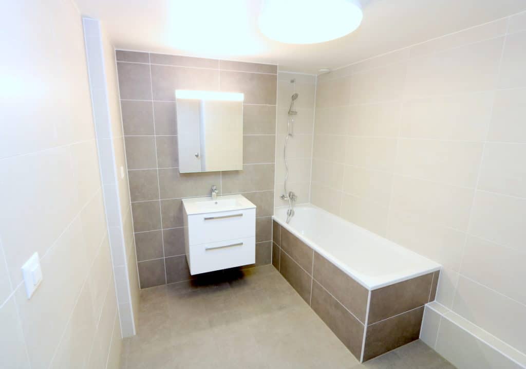 hall d’entrée, salon (27 m2), cuisine ouverte sur le salon (9 m2), hall de nuit, 4 chambres coucher (3 x 10 m2, 1 x 13 m2) WC d’entrée, salle de bains, armoires penderies dans les halls.