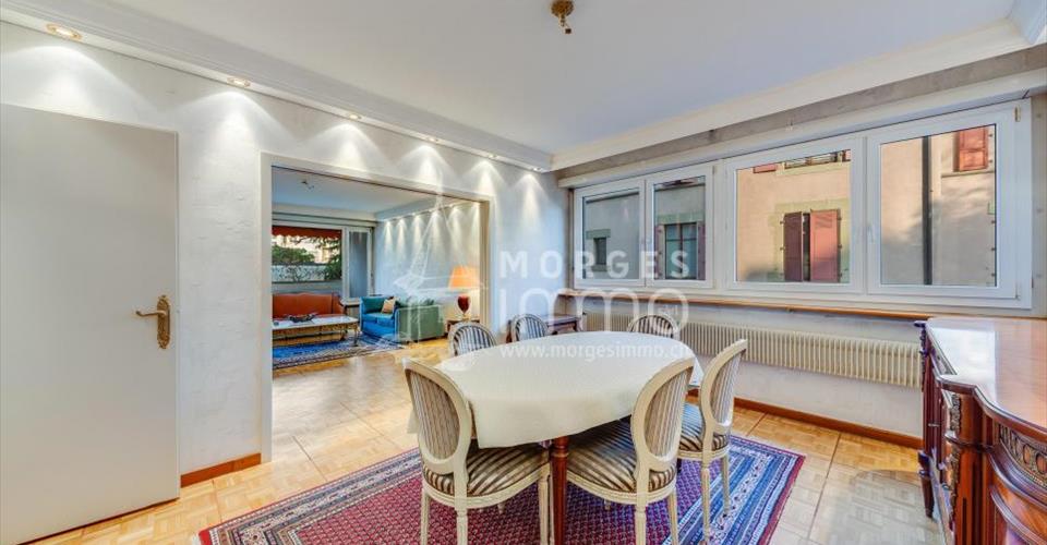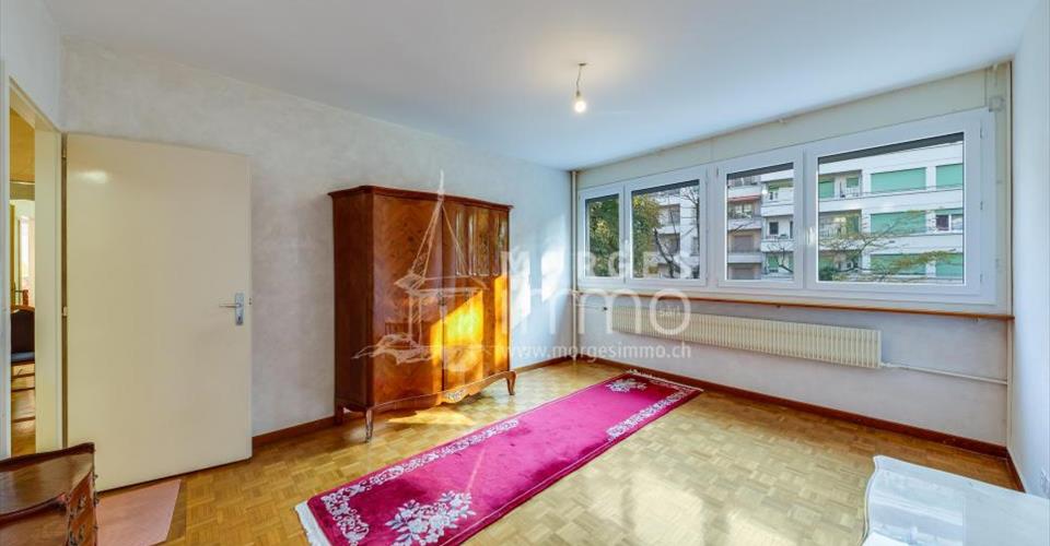 Situé dans le quartier résidentiel prisé de Champel, cet appartement spacieux de 6 pièces d’environ 143 m² bénéficie d’une belle luminosité et d’un cadre de vie agréable. Disposition : – Hall d’entrée avec vestiaire et wc visiteurs – Grand séjour avec accès au balcon/loggia d’environ 8 m² – Salle à manger conviviale – Cuisine agencée – Chambre et sa salle d’eau attenante avec douche, wc et lavabo – Hall de dégagement partie nuit – Deux chambres à coucher généreuses d’environ 17 m² chacune – Salle d’eau avec baignoire, wc et lavabo. Annexes : – Cave privative au sous-sol – Buanderie commune