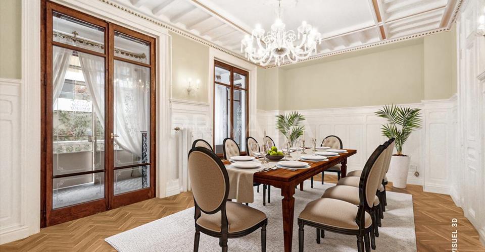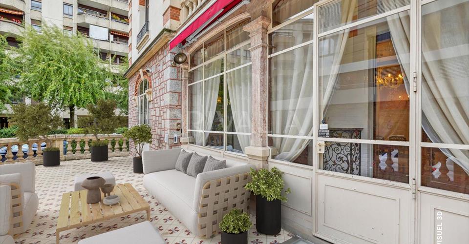 Situé au rez-de-chaussée d’un superbe immeuble datant du XIXe siècle, cet appartement d’une surface PPE de 211 m² allie charme historique et confort moderne. Entièrement rénové avec des matériaux de qualité supérieure, ce bien de caractère se distingue par ses belles hauteurs sous plafond, ses moulures élégantes, son parquet en chevron raffiné ainsi que ses cheminées décoratives, offrant un cadre de vie exceptionnel. L’appartement se distribue comme suit : – Spacieux hall d’entrée avec vestiaire et espaces de rangement généreux – Cuisine entièrement équipée et aménagée – Deux grands placards – Salle à manger lumineuse, avec accès à une véranda élégante ouvrant sur la terrasse et le jardin – Vaste salon avec cheminée pour une atmosphère chaleureuse – Suite parentale avec cheminée et rangements – Salle de bains avec WC – Deuxième chambre à coucher avec armoires intégrées – Troisième chambre à coucher avec salle de douche attenante – WC visiteurs – Buanderie privée Technologies modernes : L’appartement est équipé d’un système domotique “CONTROL4 Smart House”, d’un système d’alarme sophistiqué et de caméras de surveillance extérieures pour une sécurité optimale. Extérieurs : Profitez d’un jardin privatif entièrement clôturé d’environ 200 m², agrémenté d’une terrasse de 40 m². La cour offre la possibilité de stationner plusieurs véhicules, avec un accès sécurisé par un portail électrique. Un garage de 15 m² a été astucieusement transformé en espace de rangement supplémentaire. Enfin, une grande cave privée et aménagée, accessible directement depuis le jardin, ainsi qu’une place de parking en sous-sol complètent ce bien d’exception. Ne manquez pas l’opportunité d’acquérir un bien idéalement positionné en plein centre-ville, bénéficiant d’une proximité immédiate avec toutes les commodités (transports en commun, restaurants, commerces).