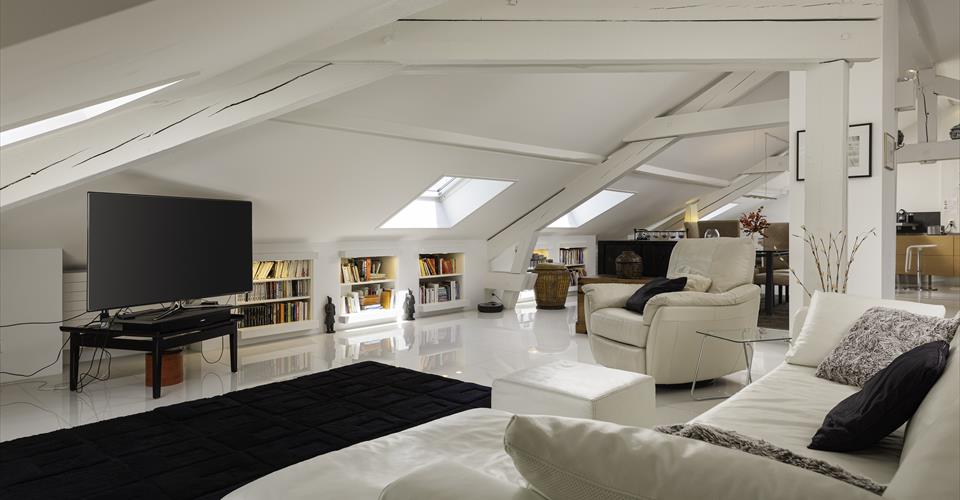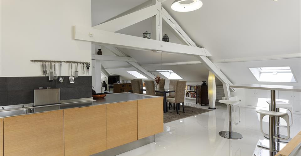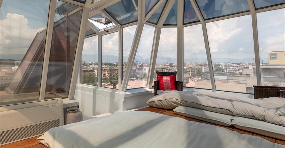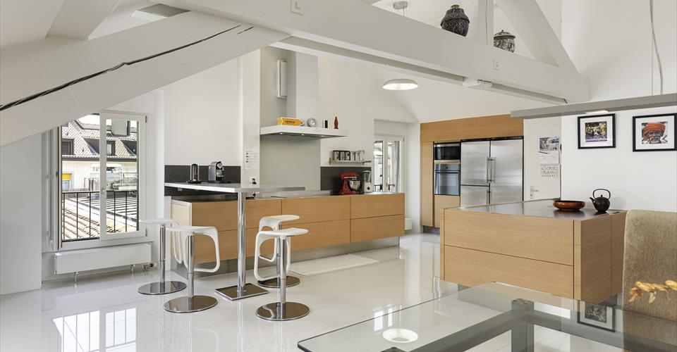 Installé au sommet d’un ancien hôtel de caractère, ce logement unique surplombe la plaine de Plainpalais. Avec ses 272 m² PPE (229 m² pondérés), il occupe l’intégralité du dernier niveau sous une magnifique charpente mansardée. L’organisation intérieure allie de vastes espaces ouverts à des coins plus intimes, créant un cadre de vie aussi pratique qu’agréable. Au centre de l’appartement se trouve une cuisine spacieuse aux finitions soignées, conçue pour partager des moments conviviaux. Attenantes, la salle à manger et le séjour profitent d’une luminosité exceptionnelle grâce à la multitude de fenêtres et de velux qui diffusent la lumière naturelle dans tout l’espace. Côté nuit, trois chambres généreuses bénéficient de grands velux. La suite parentale dispose de sa propre salle de bain. À l’opposé des zones de vie, un bureau lumineux permet de travailler dans une atmosphère calme et propice à la concentration. Le véritable atout de ce bien reste la superbe verrière en toiture. Accessible par un escalier dans le salon, elle dévoile un panorama saisissant sur Genève et ses montagnes environnantes. En complément, un grand garage peut être loué.