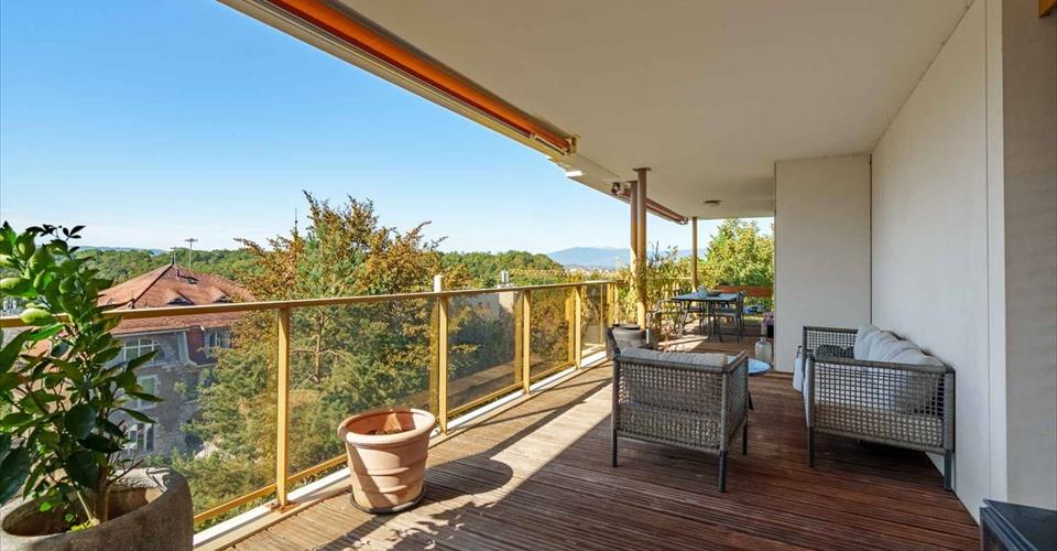 Superbe duplex en attique d’une surface PPE de 146 m² situé à Champel : – 3 chambres à coucher dont une suite parentale avec dressing et salle de douche complète – Cuisine équipée et aménagée ouverte avec îlot central – Terrasse couverte en pignon de 55 m² orientée plein sud – Rooftop de 171 m² avec jacuzzi, douche extérieure, solarium et table pour les soirées estivales – Une cave en sous-sol – Place de parking