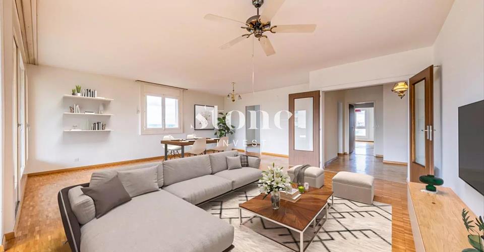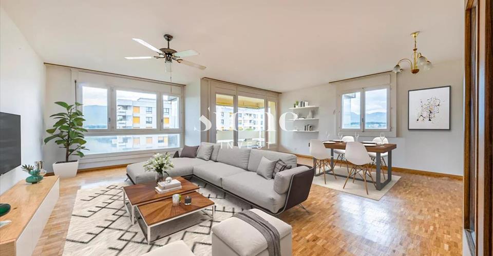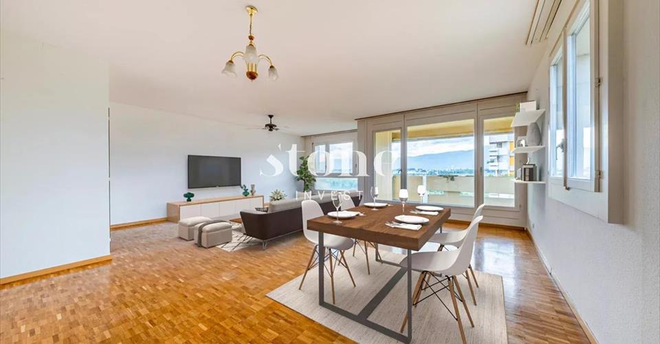CASATAX possible! Venez visiter sans attendre ce lumineux appartement traversant de 161 m2 avec 4 chambres, situé en étage élevé au sein d’une résidence sécurisée, entourée d’espaces verts et avec 2 ascenseurs. Proche des commerces, des écoles, des transports ainsi que de la piscine et du joli lac, vous serez séduits par son agréable vue sur le Jura et la campagne environnante. La partie jour offre une lumineuse et très spacieuse pièce de vie avec accès à l’agréable terrasse de 16m2. La cuisine profite de l’espace pour une table. Le mur entre la cuisine et le salon n’étant pas porteur, il serait possible de créer une unique encore plus spacieuse pièce de vie. Un hall d’entrée avec rangements et un wc visiteurs séparent la zone nuit. On y trouve 4 chambres dont la chambre parentale avec une parois d’armoires et sa salle de bains privative. Une armoire dans le couloir, 3 autres chambres ainsi qu’une deuxième salle de bains complètent la zone nuit. Une mise aux goûts du jour transformera ce bien en un superbe objet ! L’immeuble profite de 2 ascenseurs et est entouré d’espaces verts. Ce bel appartement est vendu avec un box et une cave en sus. Une grande buanderie avec plusieurs machines, une salle de fête gracieusement à disposition des habitants de l’immeuble. Plusieurs places de parking extérieures ainsi qu’un agréable parc très bien entretenu agrémentent la copropriété. N’hésitez pas, contactez-moi pour plus d’informations et pour organiser une visite.