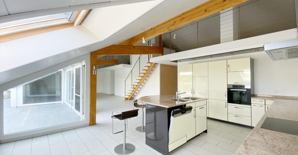 CALME ET CADRE PRIVILÉGIÉ Situé au coeur de la ravissante commune d’Orbe, ce magnifique appartement de 6 pièces et d’env. 212 M2 utiles offre une vue imprenable sur la rivière, la vallée et sa nature riche pour un bien-être et une tranquillité sans égal. Ce magnifique appartement avec ascenseur privatif saura vous séduire par ses nombreuses qualités. Ses spacieuses pièces baignées de lumière, grâce à ses nombreuses fenêtres idéalement exposées, sauront vous apporter un lieu de vie ressourcant et particulièrement plaisant. Grâce à sa distribution optimale, chaque espace est pensé pour allier confort et fonctionnalité. Une grande terrasse équipée d’une véranda vous accueillera pour savourer de belles soirées d’été dans une atmosphère idyllique. DISTRIBUTION – Hall d’entrée avec armoires encastrées – WC visiteurs avec colonne de lavage – Deux chambres à coucher – Salle de douche avec WC – Spacieuse cuisine avec îlot central, ouvert sur le séjour – Grand salon avec poêle et accès direct à la terrasse – Deux chambres dont une avec espace dressing – Salle de bain avec double vasque, WC et douche – Grande mezzanine d’env. 40 M2 (compté comme une demi pièce) Atouts supplémentaires : accès privatif à l’appartement depuis l’ascenseur commun, stores électriques, panneaux solaires, une place de parc intérieure (CHF 40’000.- en sus du prix) ainsi qu’une cave d’env. 37 M2 et un local à vélos. Surface habitable : env. 172 M2 Surface de la mezzanine : env. 40 M2 Surface de la terrasse : env. 27 M2 Surface de vente : env. 185 M2 (Terrasse comptée à 1/2) Surface utile : env. 212 M2 En visitant cet appartement, vous découvrirez un véritable coin de paradis, prêt à devenir votre prochain chez-vous. Ne laissez pas passer cette occasion unique d’acquérir un bien exceptionnel. Pour plus d’informations ou pour organiser une visite, contactez-nous dès aujourd’hui. Deborah Nardo PROXIMMO Agence Immobilière Sàrl Ruelle W.-Mayor 2 CH – 2001 Neuchâtel www.proximmo.ch Toutes nos offres et promotions sont visibles ici : https://www.proximmo.ch/acheter/ Vous envisagez de mettre en vente votre bien immobilier ? Contactez-nous sans engagement pour une estimation gratuite de votre objet. www.proximmo.ch