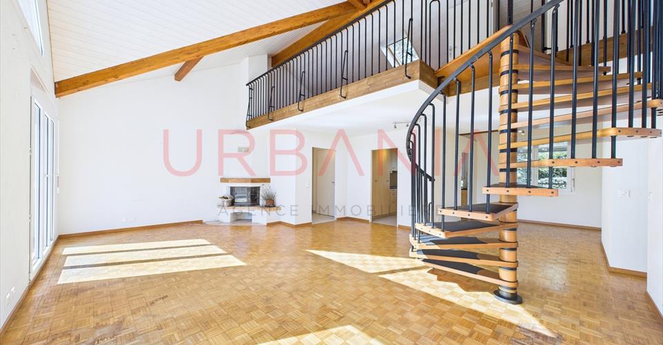 À vendre à Plan-les-Ouates, dans un environnement résidentiel calme et verdoyant, superbe appartement traversant en PPE de 191 m² avec une terrasse de 35 m², idéalement exposé sud-ouest. Il se compose d’un vaste séjour lumineux avec cheminée et accès direct à la terrasse, d’une cuisine séparée entièrement équipée, de quatre chambres confortables, de deux salles de bains et de toilettes séparés. Une agréable mezzanine surplombe le salon et offre un espace supplémentaire polyvalent (bureau, coin lecture, salle de jeux). L’immeuble bénéficie d’un ascenseur et se trouve à proximité immédiate de toutes les commodités tout en offrant une tranquillité absolue. Cet appartement rare par sa surface, sa disposition et son cadre est une opportunité à saisir. Solde du fonds de rénovation au 31.12.2024 : 562’014.32.-