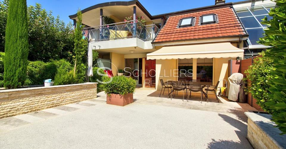 Situé dans un quartier résidentiel calme et recherché de Plan-les-Ouates, à proximité immédiate des écoles, commerces, transports publics et principaux axes routiers, ce spacieux appartement traversant en duplex de 170 m² habitables réunit confort, fonctionnalité et charme – le cadre idéal pour accueillir une famille. À l’étage supérieur, une vaste pièce de vie baignée de lumière profite de larges baies vitrées ouvrant sur une terrasse exceptionnelle de 127 m² orientée sud-est. Le séjour et la salle à manger s’intègrent harmonieusement à une cuisine semi-ouverte au style chaleureux, entièrement équipée et agrémentée d’un coin repas convivial. Deux chambres avec accès à un balcon de 8 m² ainsi que deux salles d’eau complètent ce niveau. L’étage inférieur propose deux chambres supplémentaires partageant une salle de douche, chacune bénéficiant d’un accès direct à une terrasse privative. Cet espace indépendant se prête idéalement à un bureau, une chambre d’adolescents ou un espace invité. Une grande pièce de rangement avec coin buanderie vient parfaire l’aménagement. La distribution actuelle permet également de créer deux appartements distincts, chacun avec ses accès extérieurs indépendants – une opportunité rare pour un projet familial intergénérationnel ou un investissement locatif. Un box fermé de 28 m² avec alimentation électrique et rangements, ainsi qu’une place de parking extérieure, complètent ce bien. Avec ses généreux volumes, ses multiples espaces extérieurs et son atmosphère accueillante, cet appartement constitue une opportunité rare à Plan-les-Ouates, à seulement quelques minutes de Genève.