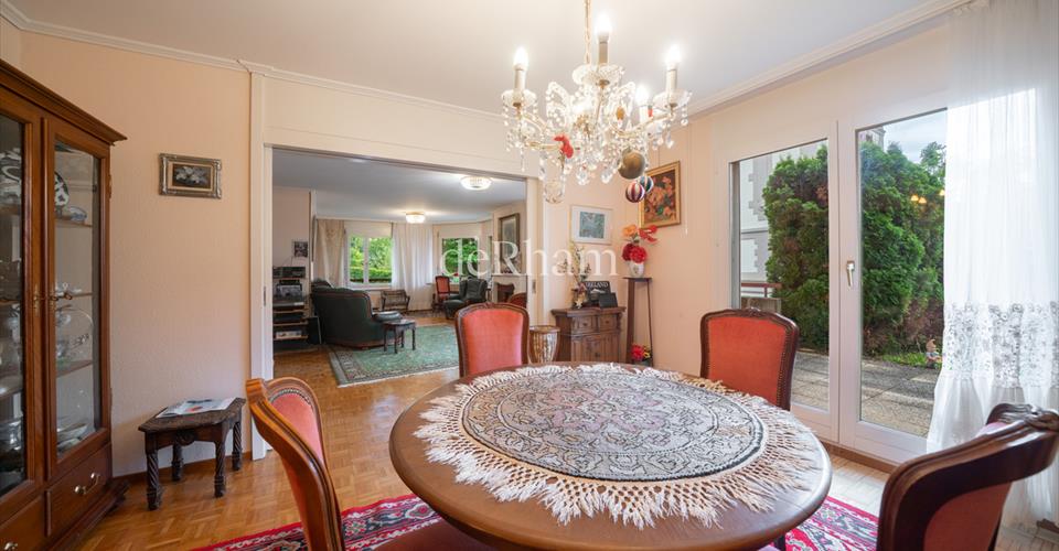 Situé dans un environnement calme et résidentiel à Pully, cet appartement de 6 pièces séduit par sa généreuse surface pondérée d’environ 200 m². L’appartement se distingue par une belle pièce de vie baignée de lumière, comprenant un spacieux séjour ouvert sur la salle à manger. De grandes baies vitrées prolongent cet espace vers une agréable terrasse et un jardin privatif. Il dispose également de trois chambres à coucher de bonne taille, ainsi que d’une suite parentale avec sa salle de bains privative. Une rénovation est à envisager, offrant ainsi une belle occasion aux futurs propriétaires de repenser les espaces selon leurs envies et de créer un intérieur qui leur ressemble. C’est l’opportunité idéale de valoriser le fort potentiel de ce bien, dans un cadre de vie recherché. En complément, un garage double ainsi qu’une place de parc extérieure offrent un confort de stationnement. Une belle opportunité à découvrir sans tarder, n’hésitez pas à nous contacter dès aujourd’hui pour organiser une visite.