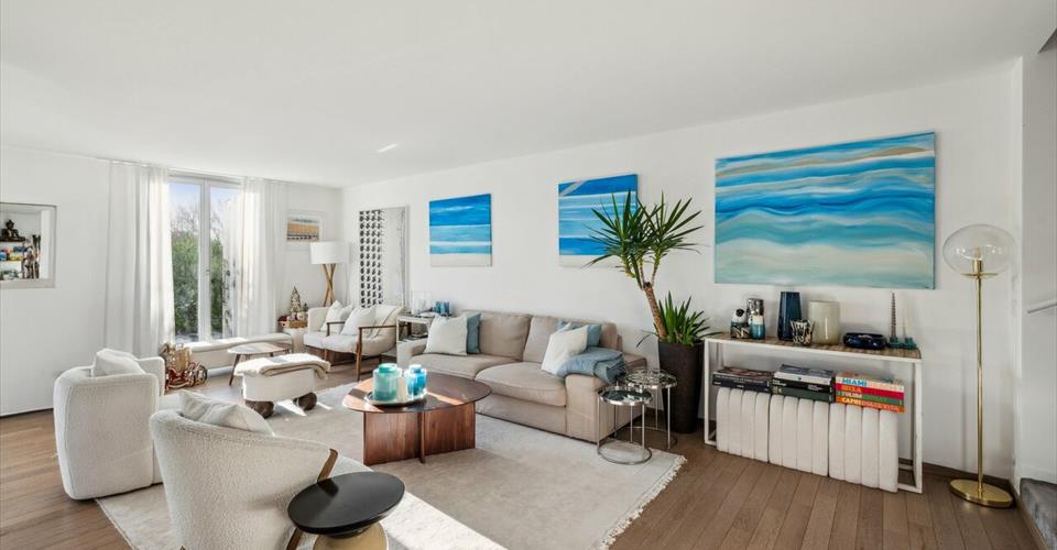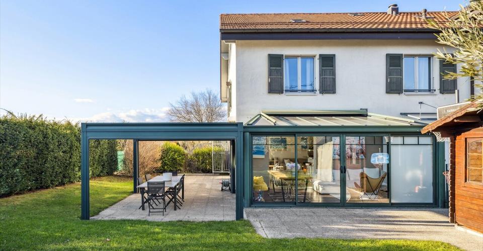 Dans un cadre verdoyant et extrêmement paisible, cet appartement lumineux en duplex + sous-sol de 6 pièces, se situe au sein d’une petite copropriété au cœur du charmant village de Puplinge. Avec une surface habitable de 141 m², il offre des espaces de vie confortables et généreux. Au rez-de-jardin, vous découvrirez un hall d’entrée qui mène à un grand séjour s’ouvrant sur le jardin orienté sud-est. Une véranda chauffée au sol et aménagée en salle à manger, complète cet espace convivial, tout comme une cuisine équipée et un WC visiteurs. À l’étage, l’espace nuit comprend trois chambres à coucher, dont une suite parentale avec salle de bains/WC attenants, ainsi qu’une salle d’eau. Le sous-sol propose une pièce polyvalente offrant de nombreuses possibilités de rangement. À l’extérieur, le jardin clos et arboré de 254 m² constitue un véritable havre de paix, sans vis-à-vis. Il comprend une cabane pour enfants et un établi séparé, ajoutant au charme de la propriété. Accès à une place de parking intérieure spacieuse, pouvant accueillir une à deux voitures en enfilade. Une place de parking extérieure complète ce bien. Cet appartement, alliant confort, luminosité et tranquillité, est idéal pour ceux qui recherchent un cadre de vie privilégié.