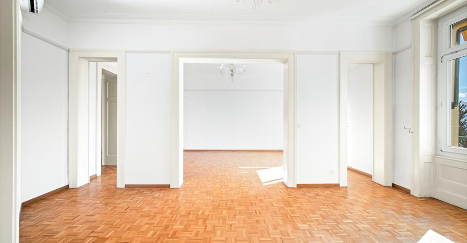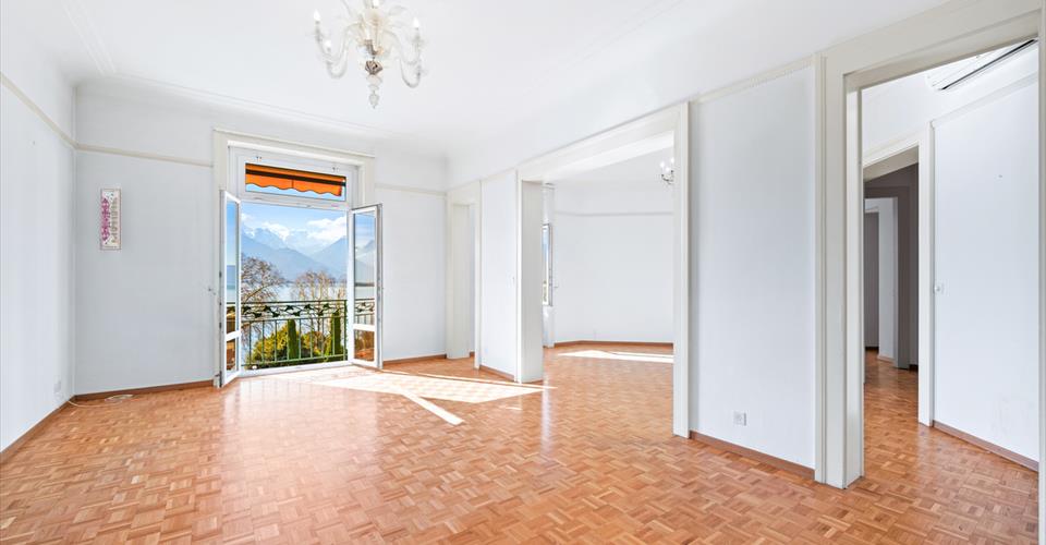 Idéalement situé dans un quartier prisé de Montreux/Territet, cet appartement d’exception bénéficie d’un emplacement privilégié à proximité immédiate des quais du lac Léman, des commerces, et des transports. Avec une surface habitable de 190 m², ce bien rare occupe le 3ème étage de la fameuse résidence Riant-Château, un immeuble de haut standing construit en 1912-1913, offrant un cadre unique face au Lac Léman et aux Alpes. Destiné à une clientèle cosmopolite, Riant-Château séduit par son architecture historique tout en offrant des équipements modernes tels que des ascenseurs ainsi que des matériaux de qualité propres aux bâtiments de cette époque. L’appartement propose une disposition unique, comprenant un vaste espace de vie qui regroupe une cuisine ouverte, une salle à manger et un salon en deux parties. Les volumes généreux et la hauteur sous plafond remarquable apportent une véritable sensation d’espace et de confort. Le salon offre une vue dégagée sur le lac Léman et les montagnes. Le bien dispose de trois chambres à coucher, chacune dotée de sa propre salle de bain privative. Les résidents de l’immeuble bénéficient également d’une terrasse commune sur le toit, offrant une vue imprenable sur le lac et la Riviera. Ce bien est complété par une cave et une place de parc intérieure (en supplément). Prix de l’appartement : CHF 2’480’000 Prix de la place de parc : CHF 50’000 À propos de Montreux et de sa situation Montreux est réputée pour sa douceur de vivre, ses paysages spectaculaires entre lac et montagnes, ainsi que son riche patrimoine culturel. Le bien se trouve à proximité immédiate des quais fleuris, parfaits pour des promenades ou des activités nautiques, et des commerces du centre-ville. Les infrastructures de transports sont également idéales : un arrêt de bus est situé à quelques pas, et la gare de Territet permet de rejoindre rapidement les principales villes suisses et internationales. Les domaines skiables des Alpes Vaudoises sont accessibles en seulement 30 minutes en voiture. Genève et son aéroport international ne sont qu’à une heure de route, tandis que Milan est facilement accessible en trois heures de train. Un bien rare dans un cadre enchanteur Cet appartement représente une opportunité unique pour profiter de l’art de vivre incomparable de la Riviera lémanique.