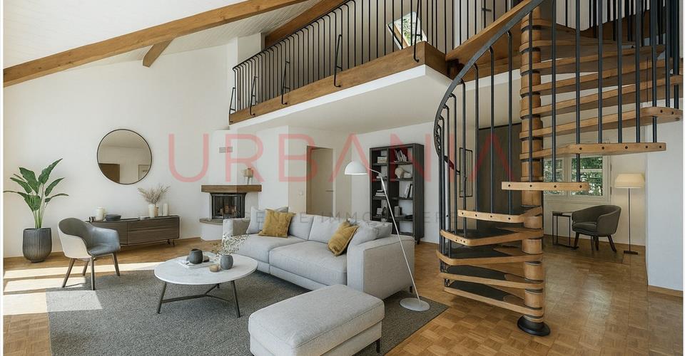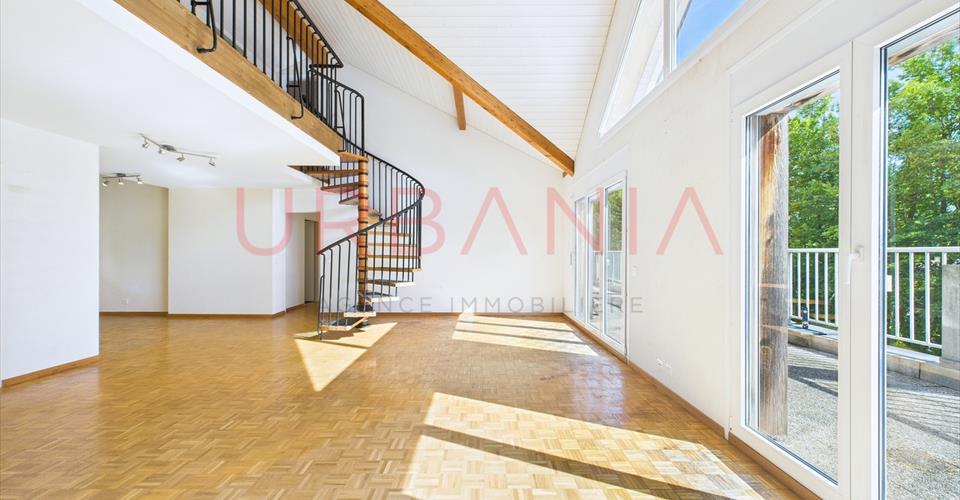 À vendre à Plan-les-Ouates, dans un environnement résidentiel calme et verdoyant, superbe appartement traversant en PPE de 191 m² avec une terrasse de 35 m², idéalement exposé sud-ouest. Il se compose d’un vaste séjour lumineux avec cheminée et accès direct à la terrasse, d’une cuisine séparée entièrement équipée, de quatre chambres confortables, de deux salles de bains et de toilettes séparés. Une agréable mezzanine surplombe le salon et offre un espace supplémentaire polyvalent (bureau, coin lecture, salle de jeux). L’immeuble bénéficie d’un ascenseur et se trouve à proximité immédiate de toutes les commodités tout en offrant une tranquillité absolue. Cet appartement rare par sa surface, sa disposition et son cadre est une opportunité à saisir. Solde du fonds de rénovation au 31.12.2024 : 562’014.32.-