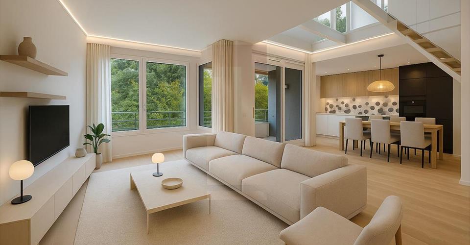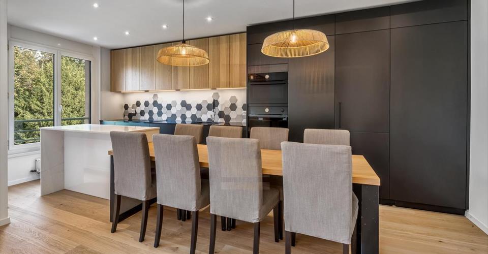 Niché au coeur d’un parc privatif de 10’000 m², ce superbe duplex en attique séduit par son emplacement exclusif, son atmosphère paisible et ses finitions haut de gamme. À seulement 250 mètres du Port-Choiseul et de la plage de Versoix, il marie à la perfection confort familial et art de vivre au quotidien. Entièrement rénové en 2024, ce duplex traversant de 213 m² PPE offre des volumes généreux, une luminosité exceptionnelle et une élégance raffinée. – Au premier niveau : Un vaste hall d’entrée avec vestiaire et toilettes visiteurs, cuisine contemporaine avec îlot central, séjour lumineux prolongé par une loggia avec vue sur le parc, deux grandes chambres chacune avec salle de bains privative. – À l’étage supérieur : Une somptueuse suite parentale avec dressing et salle de bains, ouverte sur une terrasse de près de 100 m² offrant une vue imprenable sur la nature. Une pièce supplémentaire, idéale pour un bureau ou un espace TV, complète ce niveau. Ce duplex d’exception s’accompagne d’un box fermé en sous-sol, d’une cave à vin climatisée, d’une cave classique, d’un ascenseur, d’un accès sécurisé et de places visiteurs. Un bien rare, pensé pour les amateurs de tranquillité, de nature et de raffinement à deux pas du lac.