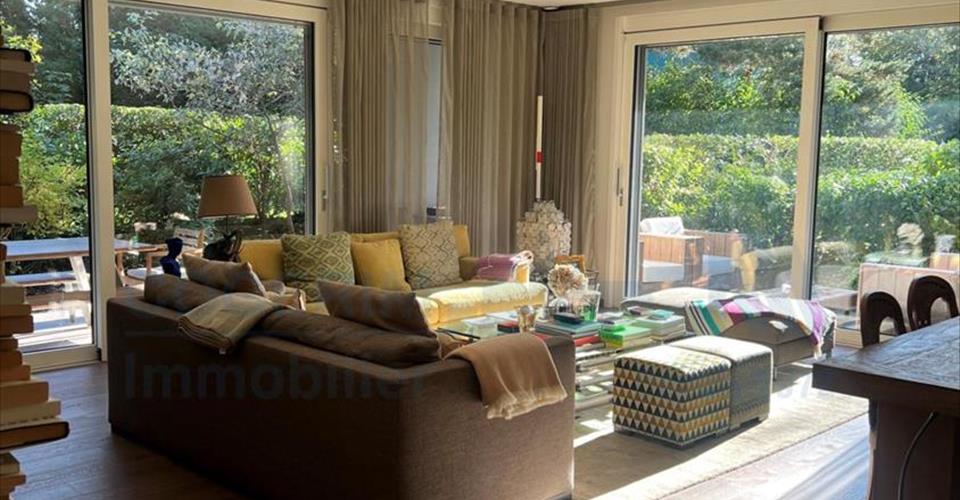 Magnifique et lumineux 6.0 pièces de standing avec terrasse arborée, dans immeuble THPE, sis à Cologny dans un environnement bucolique et verdoyant d’environ 146 m2. Le logement est composé comme suit : ? Hall d’entrée agencé d’armoires encastrées desservant un grand salon/salle à manger ainsi qu’une cuisine entièrement agencée et équipée donnant sur une grande terrasse en L. ? 3 chambres à coucher dont une faisant dressing. ? 1 pièce pouvant faire office de chambre, bureau, bibliothèque, etc. ? 1 salle de douche avec lavabo, WC comprenant une machine à laver et un séchoir. ? 1 salle de bains avec WC. ? 1 WC visiteurs. Chauffage au sol avec chaufferie centrale par géothermie et panneaux solaires en toiture pour la production d’eau chaude sanitaire. Une grande cave et 2 places de parc intérieures composent ce logement ainsi qu’une buanderie commune dans l’immeuble. L’immeuble est équipé de la fibre optique et une alarme équipe le logement. Idéalement situé, l’appartement présente de nombreux avantages en termes d’agencement, coin jour et coin nuit, et par la qualité des matériaux utilisés. Il demeure dans un cadre de verdure doté d’un parc botanique et proche toutes commodités telles écoles, magasins, arrêts de bus, centre sportif et à 10 minutes seulement du centre-ville. Loyer : CHF 5’700,- Charges : CHF 210,- 2 Places de parking : CHF 400,-