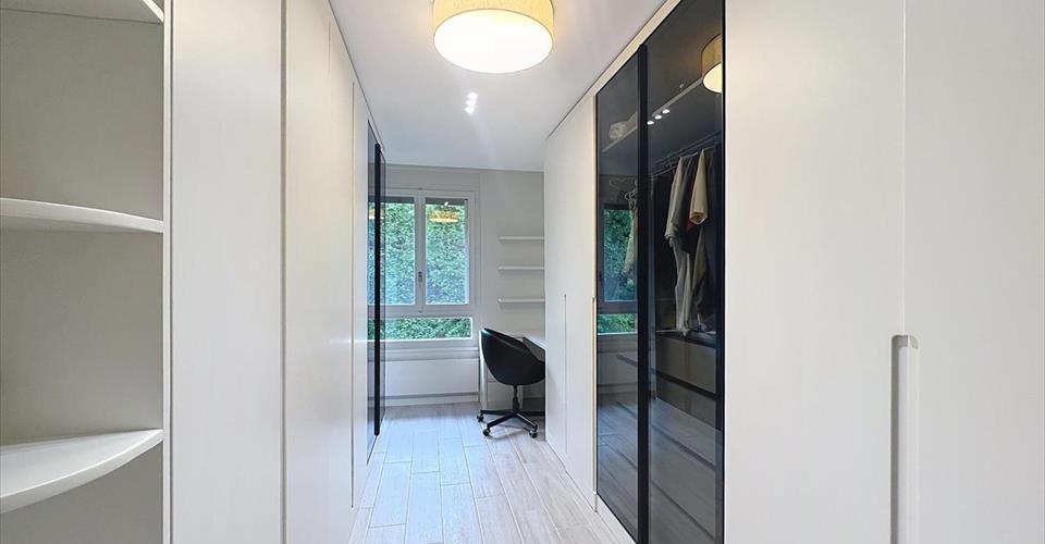 Agréable appartement de 6 pièces en duplex avec deux loggias de 5 m² et 10 m² au 2ème étage d’une jolie résidence située dans un grand parc arboré avec aire de jeux pour les enfants. Le village de Cologny se trouve à proximité immédiate et vous fera bénéficier de ses commodités (boulangeries, épiceries, restaurants, poste, pharmacie, cabinet de pédiatrie, etc). Les bus 33 et A se trouvent à quelques pas. Le centre-ville est accessible en voiture en moins de 10 minutes. L’appartement, traversant, bénéficie d’un excellent emplacement dans la résidence La Planta avec une vue dégagée sans vis-à-vis et un environnement calme et verdoyant. Meublé avec goût, il se distribue comme suit : Rez-de-chaussée Partie jour – Vase hall d’entrée avec placards intégrés – Cuisine fermée entièrement équipée et habitable avec accès au balcon – Spacieux et lumineux salon / salle à manger avec accès à une loggia – WC visiteurs Partie nuit- Spacieuse chambre avec de nombreux placards et accès à une deuxième loggia – Seconde chambre à coucher avec armoires – Troisième chambre à coucher transformée en dressing – Salle de bains/WC A l’étage – Large hall – Grande chambre à coucher avec velux – Salle de douche avec colonne de lavage Une cave et une place de parc intérieure viennent compléter ce bien. L’immeuble ne possède pas d’ascenseur. CONDITIONS LOCATIVESLoyer : Fr. 5’000.-/mois Charges : Comprises Place de parc : Comprise Disponibilité : A convenir