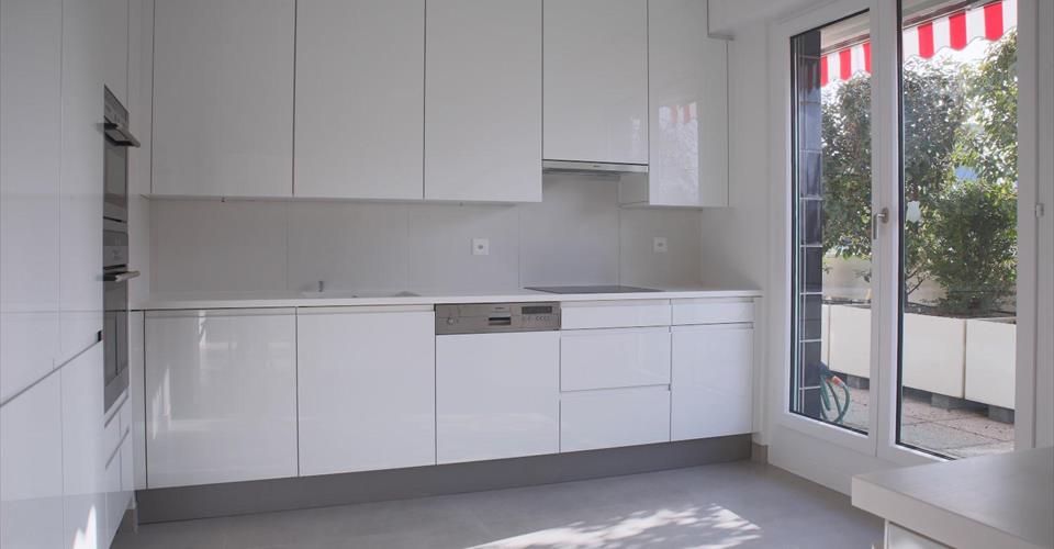 Bel attique de 6 pièces + mezzanine situé sur les Hauts de Florissant, proche de Conches. Il se déploie sur une généreuse surface de 179 m2 PPE, et comprend une vaste terrasse qui communique avec toutes les pièces de l’appartement. L’immeuble de bonne facture a été construit en 1990 et a toujours été bien entretenu. L’appartement lui-même a été complètement rénové en 2017 avec des matériaux de grande qualité, dans un style d’inspiration Art déco sobre et élégant. Les larges ouvertures et baies vitrées confèrent aux espaces une luminosité optimale, et une liberté d’accès à toute la terrasse. L’habitation se compose de : – un spacieux hall d’entrée avec rangements et penderie – un grand espace de vie en double hauteur, avec cheminée fonctionnelle – une mezzanine qui surplombe le séjour – une belle cuisine parfaitement équipée – une chambre master – deux chambres – une salle de douche avec WC A noter que l’appartement dispose de son accès privatif à l’ascenseur, ainsi que d’un barbecue extérieur sur la terrasse, idéal en période estivale. Au premier sous-sol, une cave et un double box (compris dans la location) viennent parfaitement compléter cet objet d’exception.