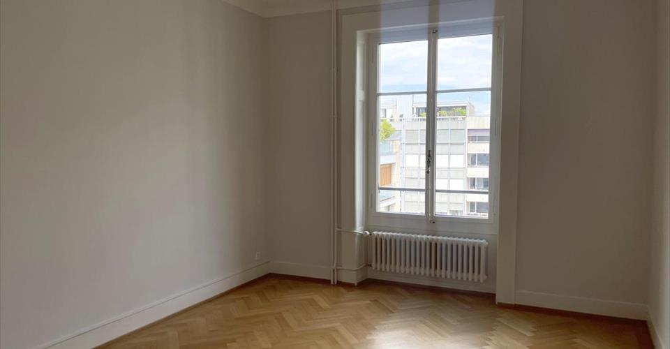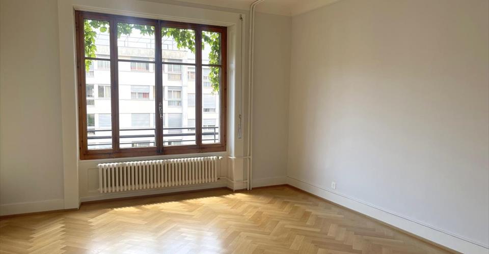 Dans un bel immeuble de standing, proche du parc Bertrand, de l’Eglise russe, des écoles, des transports publics (gare CEVA de Champel) et de toutes commodités. Ce sublime appartement, traversant et lumineux, avec beaux parquets et moulures au plafond se distribue comme suit : Grand hall d’entrée, double réception avec cheminée décorative donnant sur la loggia, cuisine équipée (four, plaques, hotte, réfrigérateur, congélateur), deux chambres, une chambrette, une salle de bains avec raccordement pour lave-linge/sèche-linge, une salle de douche, wc séparé. Cave n°14 à disposition. Charges mensuelles : CHF 314.- en sus. Disponibilité : 01.08.2025