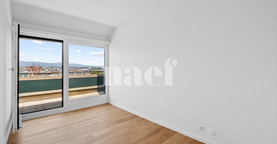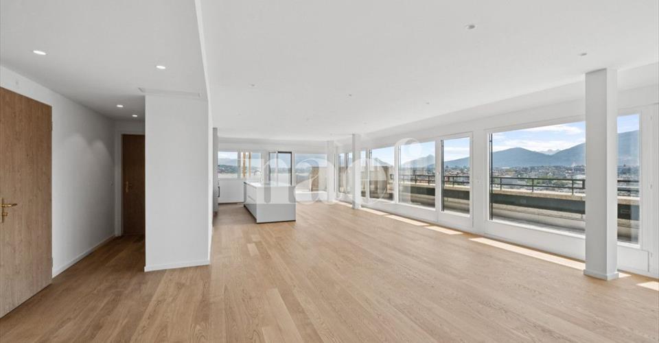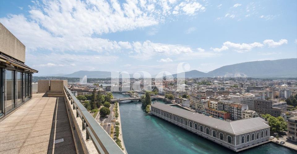 Cet appartement de 7 pièces entièrement rénové avec des matériaux de haut standing se situe au 16ème étage d’un immeuble résidentiel, sur le quai du Seujet au bord du Rhône. Ce bâtiment construit entre les années 1964 et 1976 par les architectes Julliard & Bolliger dispose d’une situation exceptionnelle avec une vue sur les montagnes environnantes. L’appartement d’’une surface de 170m2, se compose d’un hall, d’une cuisine équipée/agencée (avec four combi-vapeur, hotte, micro-onde, cave à vin, frigo, congélateur), d’un séjour avec cheminée, d’une salle à manger, de 3 chambres à coucher dont une avec salle de bain attenante à la chambre principale bénéficiant d’une baignoire, une machine à laver et un sèche-linge, d’une salle de douche, d’un WC séparé, d’une terrasse côté chambres et d’une grande terrasse côté séjour avec une vue dégagée sur le lac et le Salève. Une cave est mise à disposition à titre gratuit et à bien plaire. Ce logement est proche de toutes les commodités. Une place de parc intérieure est rattachée à ce logement pour un loyer de Fr. 280.- mensuel, en sus du loyer.