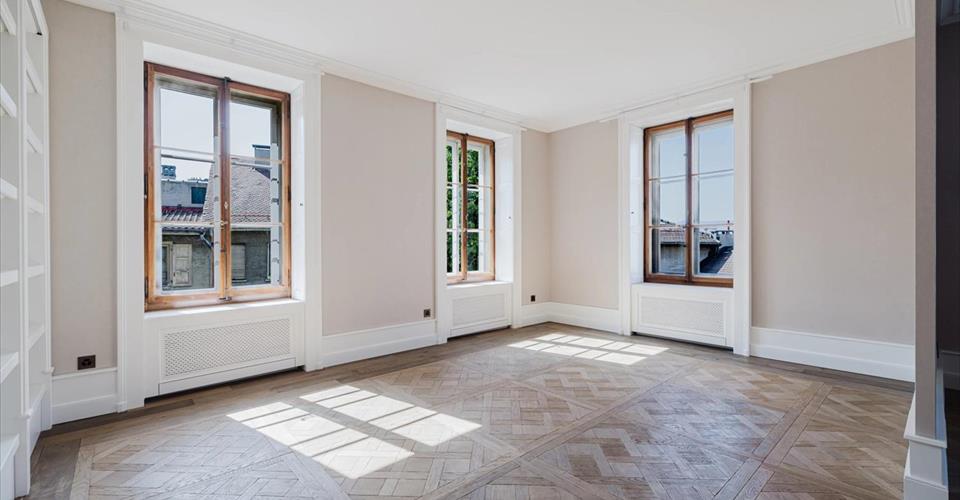 Emplacement de premier ordre pour cet appartement en excellent état situé au 2ème étage d’un immeuble de standing en Vieille Ville de Genève, Cour Saint-Pierre, à deux pas de l’hypercentre de Genève et du parking Saint-Antoine. L’appartement bénéficie d’une magnifique luminosité et d’une belle hauteur sous plafond, il est traversant avec une vue sur le jet d’eau ainsi que sur les toits de la Vieille Ville. La configuration de ce bien rare sur le marché est la suivante : – vaste hall d’entrée – beau séjour avec vue sur le jet d’eau – salle à manger en enfilade – cuisine entièrement équipée – toilette visiteurs avec douche – penderie – deux belles chambres à coucher, dont une avec cheminée – salle de douche avec toilettes – une 3ème chambre pouvant servir de bureau Bien d’exception à découvrir sans tarder, merci de nous contacter pour une visite. NB : il s’agit de surface brute