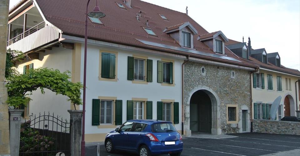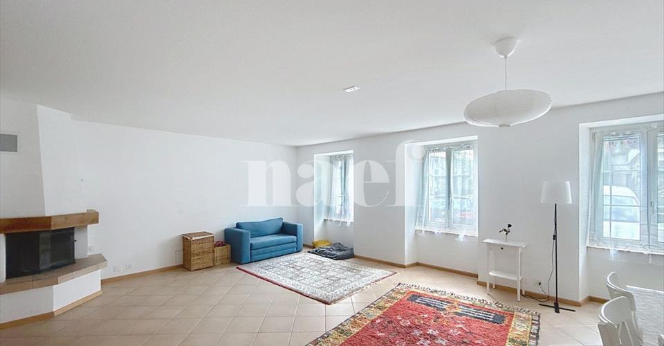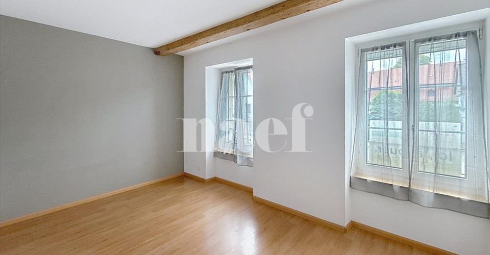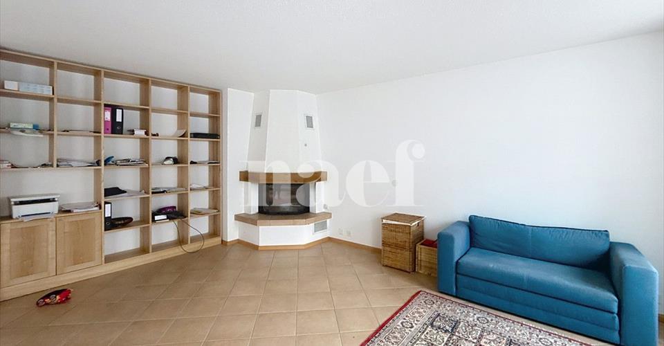 Ce ravissant logement en duplex se compose de la manière suivante : Rez-de-chaussée : – Hall d’entrée avec nombreux rangements – Cuisine entièrement agencée fermée, avec lave-vaisselle, avec accès cave/économat – Salle à manger/séjour avec une cheminée – Douche/WC – Terrasse avec jardin 1er étage : – Hall – 5 chambres dont 1 avec un réduit – Salle de bains+douche/WC – Buanderie privée avec lave-linge et sèche-linge 2 places de parc extérieures sont à louer au loyer de Fr. 60.00 par mois chacune.