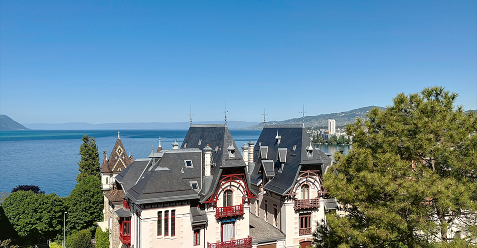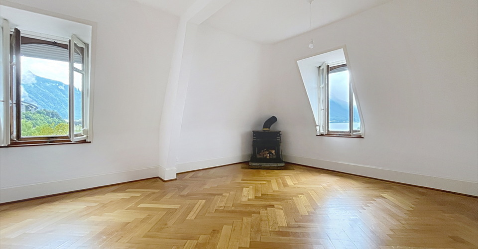 Dans une villa de Maître, située à l’Avenue de Collonge 2 à TERRITET, nous vous proposons un splendide appartement lumineux d’environ 180 m2 Ce logement se trouve au 2ème étage, orienté Sud avec magnifique vue sur les Alpes et le lac. Il se compose comme suit: – un grand hall d’entrée avec armoires murales – une cuisine habitable, entièrement agencée, équipée avec des appareils électroménagers de la marque ZUG – un grand séjour avec cheminée (en fonction) – une salle à manger – 4 chambres avec magnifiques parquets – 2 salle de bains avec fenêtres, dont l’une avec baignoire et l’autre avec douche – une buanderie privative (lave-linge, sèche-linge, étagère de rangement) – grande cave – des matériaux de 1ère qualité Cette somptueuse bâtisse se situe dans un quartier calme, entouré de verdure, à 2 minutes à pied d’un arrêt de bus, à 5 minutes du lac et à 10 minutes de MONTREUX et accès autoroute. Possibilité de louer 1 place de parc dans la cour de l’immeuble à CHF 100.00/mois. Contact visites: Bernard Nicod Vevey – Séverine Baccaro