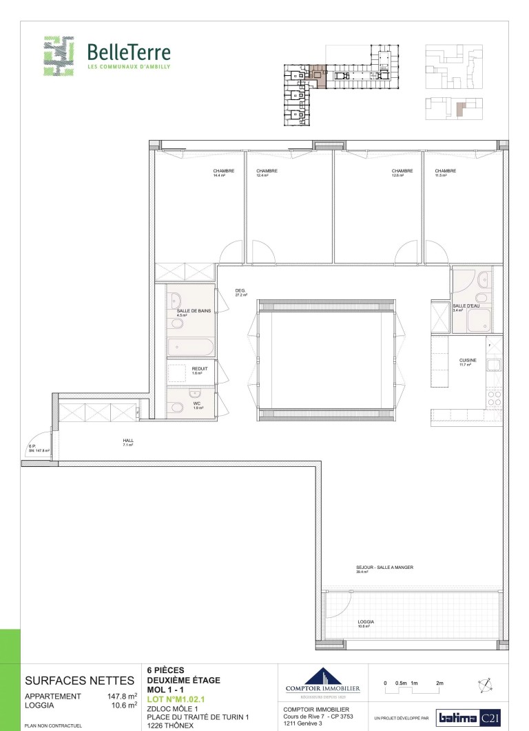 Situé dans le quartier dynamique de Belle-Terre, cet appartement spacieux offre un cadre de vie idéal pour les familles. À proximité immédiate, vous trouverez une crèche ainsi que divers commerces et restaurants, facilitant le quotidien. Le quartier, bien desservi par les transports en commun, se distingue par ses espaces verts, ses zones piétonnes et son ambiance conviviale. Un environnement urbain moderne et agréable, parfait pour allier confort et praticité. Loyer échelonné sur 3 ans : 1ere année CHF 3’625 hors charges, 2ème année CHF 3’800 hors charges et 3ème année CHF 3’936 hors charges.