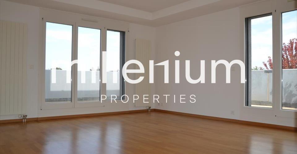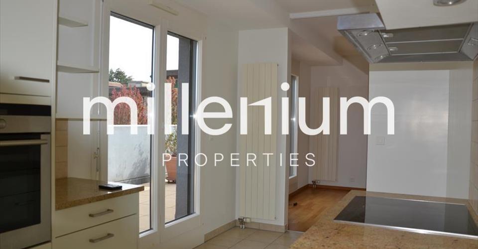 Agence : Millenium Properties Réf : LM/SCH Appartement en attique situé au Chemin de Pont-Céard, 1290 Versoix. Idéalement situé sur Versoix, cet appartement construit en 2005 de 137 m2 se compose comme suit. Ascenseur desservant l’appartement en privatif. Accès en duplex par escalier depuis le 2ème étage Terrasse 93m2 sur l’ensemble des 3 façades Est Nord-Ouest Pergolas sur côté est (Électrique) et côté ouest. Table extérieure avec 4 chaises, 1 siège Adirondack Boite de rangement BBQ, coussins Plantes – optionnel Toutes les pièces ont un accès terrasse par double porte vitrée. Parquet dans toutes les pièces sauf cuisine et bains et WC. Trois chambres 1 master chambre avec Air Conditionné, Salle de douche (Douche avec Lavabo sans WC), et 3 grand placards (Exposition Ouest) 1 chambre avec 3 grands placards (Exposition Ouest) 1 chambre sans placards (Exposition Ouest). 1 salle à manger (Exposition Est). 1 grand salon (Exposition Nord et Est avec deux accès Terrasse). 1 cuisine séparée tout équipée (Lave-Vaisselle, Réfrigérateur, Congélateur, Four, Hotte aspirante, Sèche-linge – tous appareils Siemens) (Exposition Est). 1 Salle de bain (Baignoire, Lavabo, Sans WC) avec Lave-linge. 1 WC visiteur. Un couloir de distribution avec 3 grands placards. Une place de parc extérieure à usage exclusif avec une barrière de parking pliable fermée à clé. Un garage box fermé avec télécommande et prise électrique (220V) (_ 16, au plus près de la porte d’accès à l’immeuble et le seul « sans numéro » sur la porte) – ouverture uniquement par télécommande. Deux parc visiteurs partagés avec barrières de parking pliables fermées à clé. Deux Garages vélo fermés à clé. Une Cave de 9m2. Chauffage au gaz par radiateurs avec thermostat. Doubles vitrages avec excellent isolation thermique et sonore. Proximité 75 mètres du Leman Express Arrêt Pont-Céard (Vers Cornavin ou + arrêt TPG Bus 50 (Aéroport direct) 200 mètres école primaire publique Ami-Argand 450 mètres EVE Crèche Vers à soix 500 mètres de College du Leman 550 mètres English School Geneva 700 mètres Port Choiseul – Port et plage Collège et cycle publics à moins de 1 km Tous médecins et commerces de proximité dans un rayon de 1km Prix de location : CHF 4880 + CHF 250. Service Location MILLENIUM PROPERTIES SA Boulevard du théâtre 5, 1204 Genève https://www.milleniumproperties.ch