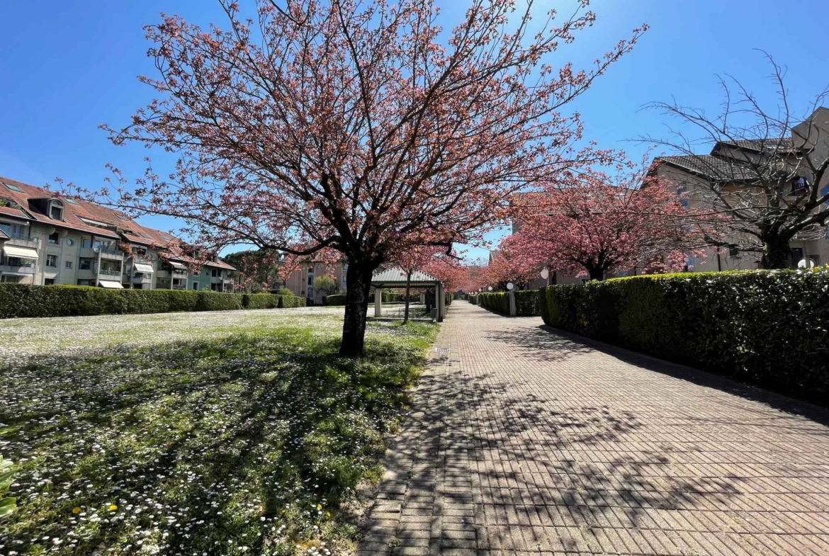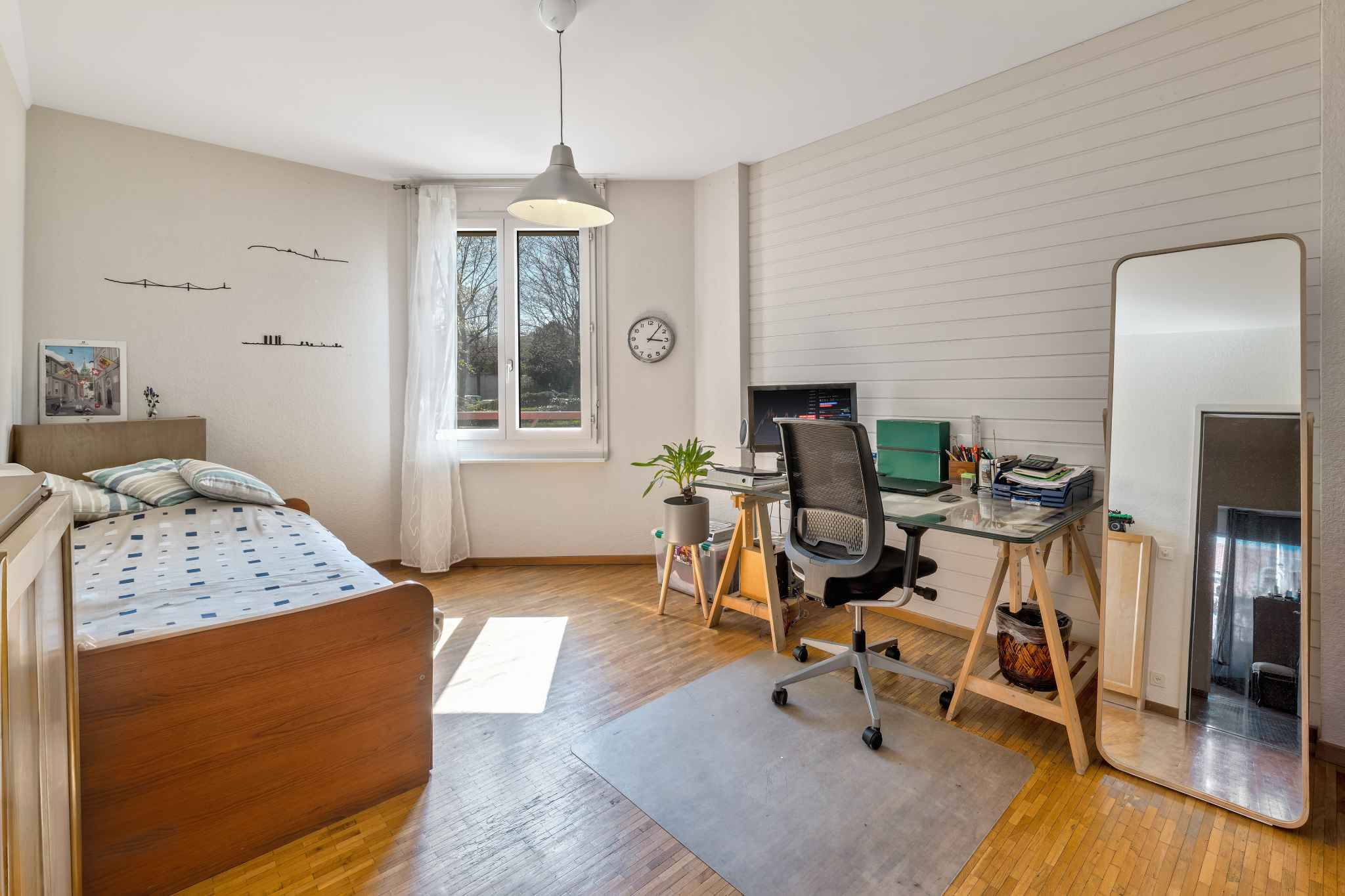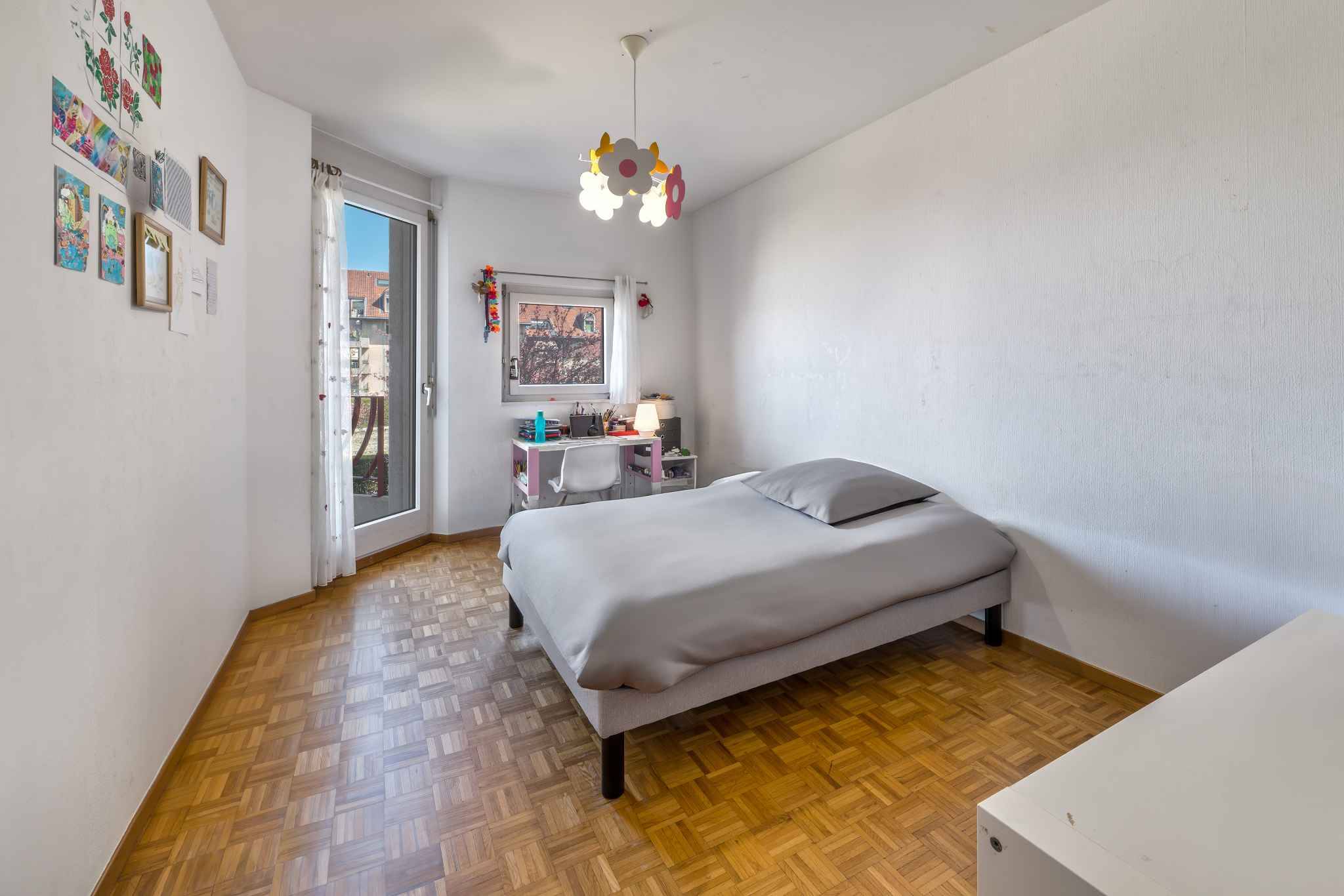 Au calme, proche des commodités telles que : transports publics, commerces, écoles, crèche, piscine du Pré-du-Champ.