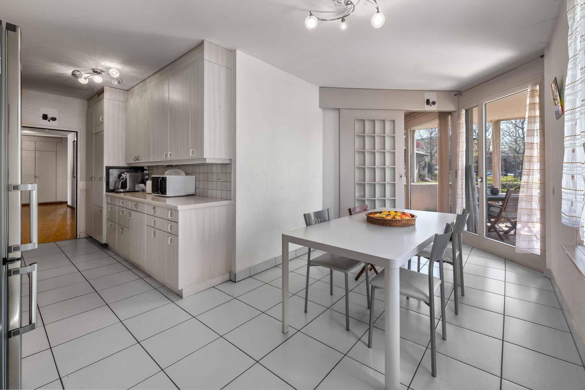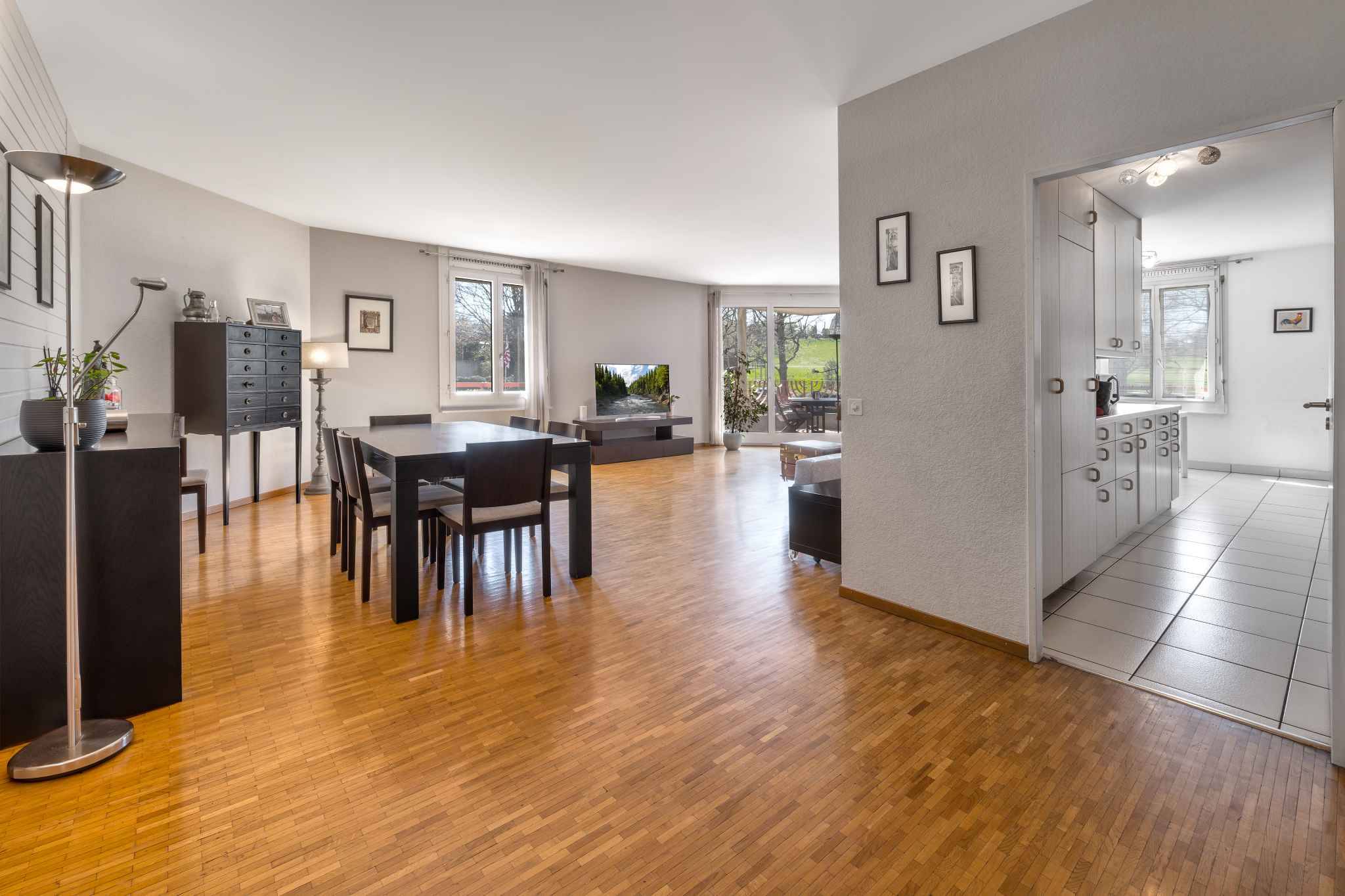 Bel appartement de 7 pièces d’une surface PPE de 193.90m² situé au 1er étage d’un immeuble résidentiel datant de 1987 sur la commune de Plan-les-Ouates, dans un quartier idéal pour une famille.