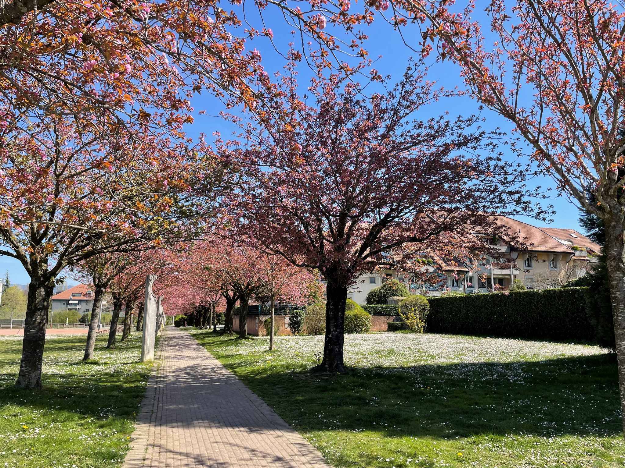 L’accès piéton est agréablement verdoyant tout le long du chemin.