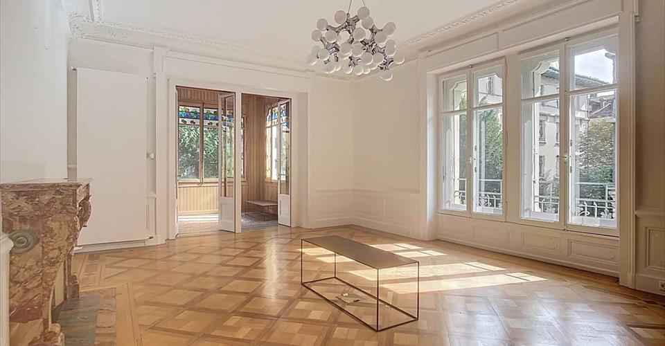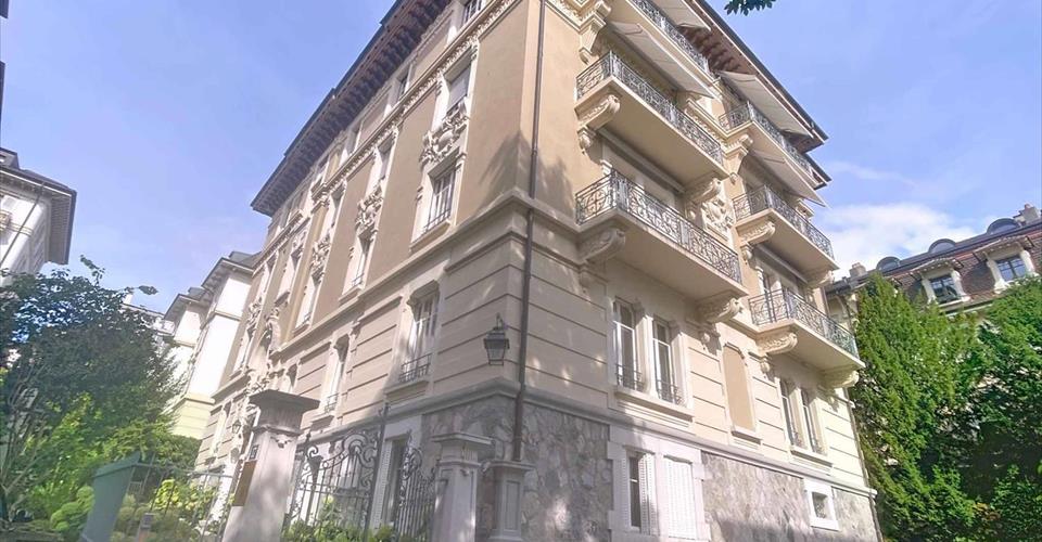 À deux pas du Musée Olympique, au cœur du quartier prisé de Florimont, la « Villa Olivier » s’inscrit dans un environnement recherché entre l’Avenue Juste-Olivier et l’Avenue des Alpes. Édifié en 1905 dans un style néobaroque italien, cet immeuble de caractère témoigne d’une architecture soignée qui a su conserver toute son élégance au fil du temps. Situé au rez-de-chaussée supérieur, cet appartement d’environ 270 m² habitables s’organise en 7,5 pièces. Ouvert sur le jardin, il séduit par ses volumes généreux, ses plafonds ornés, ses parquets d’époque et ses cheminées qui confèrent une atmosphère à la fois raffinée et intemporelle. Il bénéficie en outre d’un accès direct à la cour de l’immeuble. Un galetas aux combles ainsi qu’une cave complètent l’ensemble. À l’extérieur, deux places de parking vient s’y ajouter, conjuguant le charme d’une adresse patrimoniale et la praticité d’une situation centrale au cœur de Lausanne.