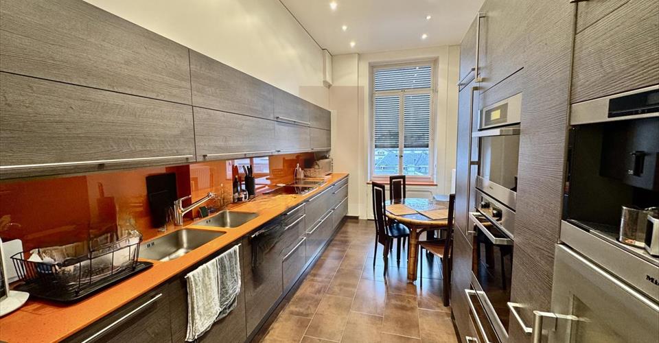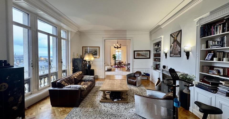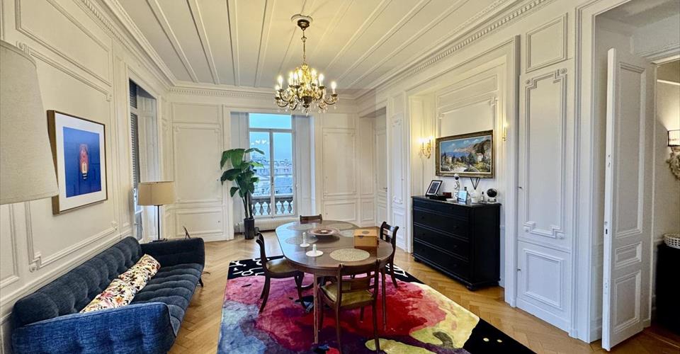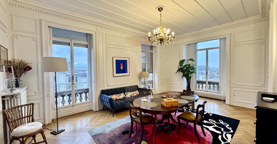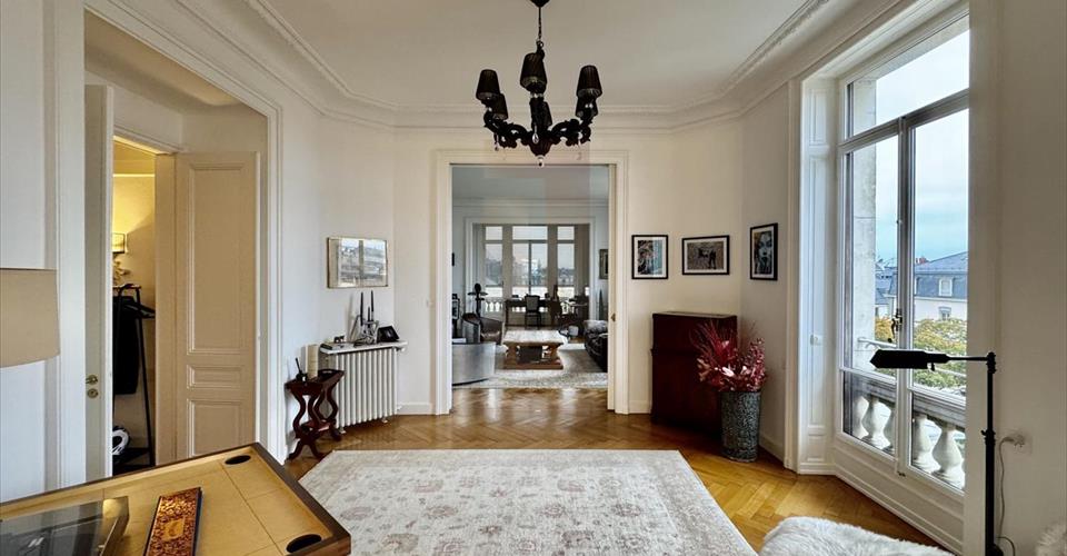 Idéalement situé, dans un cadre verdoyant, dans le quartier très prisé de l’Eglise Russe, au 4ème étage d’un immeuble de très haut standing datant du début du XXème siècle, ce superbe appartement d’une superficie de 233 m2 allie parfaitement le confort contemporain au charme de l’ancien. Seul appartement à l’étage, il se compose : – d’une belle entrée, – de trois spacieuses et lumineuses pièces de réception en enfilade, dont une avec cheminée, bibliothèque et alcôve, offrant une vue imprenable à 180 degrés sur le Jura, la vieille ville et l’Eglise Russe avec une échappée sur le lac, – d’une cuisine fermée moderne et entièrement équipée avec un espace buanderie équipé, – d’un wc invités. La partie nuit comprend : – un dégagement avec walk-in dressing, – une master bedroom avec grand dressing, salle de douche et wc attenants, – une 2ème chambre avec placards, salle de douche et wc en suite, – une 3ème chambre avec vue sur l’Eglise Russe, Une cave de 12 m2 complète ce bien. Local vélos, fibre optique, stores électriques. Proche des commerces et des commodités, cet appartement rare à la location est véritablement un bien d’exception.