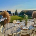 Au premier étage, on trouve un joli hall d’entrée avec vestiaire et des toilettes visiteurs, un plan ouvert : séjour avec cheminée ouvrant sur salle-à-manger avec cuisine ouverte ouvrant la belle terrasse ensoleillée.