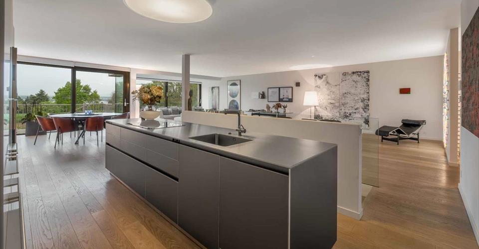 Situé dans un immeuble labellisé Minergie construit en 2013, au sein d’une élégante résidence de standing, ce magnifique duplex se trouve au cœur de la commune prisée de Corsier. Dans un environnement paisible et verdoyant, à proximité immédiate des commodités du village et de Corsier-Port, ce bien offre un cadre de vie privilégié, alliant confort, modernité et nature. D’une surface PPE généreuse de 328 m², complétée par 38 m² de terrasses ainsi que deux jardins privatifs de 62 m² et 67 m², l’appartement séduit par ses volumes contemporains, ses finitions haut de gamme et ses lignes épurées. De larges baies vitrées inondent les espaces de lumière et offrent des vues sublimes, sur le lac, le Jura et les champs environnants, qui évoluent au rythme des saisons. Il est actuellement aménagé comme suit: Au rez-supérieur :un hall d’entrée avec toilettes visiteurs, un spacieux séjour baigné de lumière avec vues dégagées, une salle à manger donnant accès à un grand balcon surplombant les champs, une cuisine ouverte moderne, parfaitement équipée, et un grand espace bureau avec dressing et salle de douche, pouvant être aménagé en suite parentale ou divisé en deux chambres à coucher supplémentaires. Cet espace s’ouvre sur une terrasse orienté à l’Est avec accès direct au premier jardin. Au rez-de-jardin, se trouve une suite parentale avec dressing et salle de douche attenante, deux chambres à coucher, chacune avec salle de bains privative. Toutes les chambres donnent accès à une grande terrasse orientée Ouest et au second jardin, offrant un espace de détente au cœur de la verdure. Une cave et deux places de parking intérieures viennent compléter avantageusement ce bien unique, alliant situation exceptionnelle, calme absolu, prestations de qualité, et vues imprenables. Une opportunité rare pour les amateurs d’architecture contemporaine et de nature, à seulement quelques minutes de Genève.
