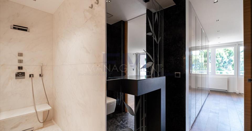 À vendre : appartement d’exception à Florissant Découvrez ce magnifique appartement contemporain d’environ 200 m2 ,idéalement situé dans le quartier résidentiel prisé de Florissant, à quelques pas du paisible Parc Bertrand. Profitez d’un cadre de vie verdoyant et tranquille au sein d’un immeuble soigné et sécurisé, agrémenté d’une piscine extérieure commune réservée aux résidents de cet immeuble en PPE. Perché au 6e étage, cet appartement offre une vue dégagée sur le Salève et a été conçu avec des matériaux de haut standing. Détails de la disposition intérieure : – Hall d’entrée accueillant avec vestiaire et WC visiteurs – Grande cuisine entièrement agencée et équipée – Spacieux séjour lumineux avec salon et salle à manger – Agréable balcon accessible depuis la pièce de vie – Deux chambres master, chacune avec leur propre salle de bain, dont une avec double dressing et balcon privé – Deux chambres supplémentaires idéales pour la famille ou les invités – Une troisième salle de bain pour un confort optimal – Buanderie indépendante Ce bien est également doté d’une cave et bénéficie de l’accès à l’ascenseur de l’immeuble. Prix : Fr 3’750 000.- Disponibilité : Immédiate Prix du Box garage en sus : CHF 100’000.- Pour toute demande de renseignement ou de visite, contactez-nous au ou par courriel à en précisant vos coordonnées téléphoniques. Après votre visite, si vous souhaitez réserver cet appartement, téléchargez le formulaire de réservation d’achat dans notre section “FORMULAIRES” sur www.fm-management.ch et renvoyez-le à