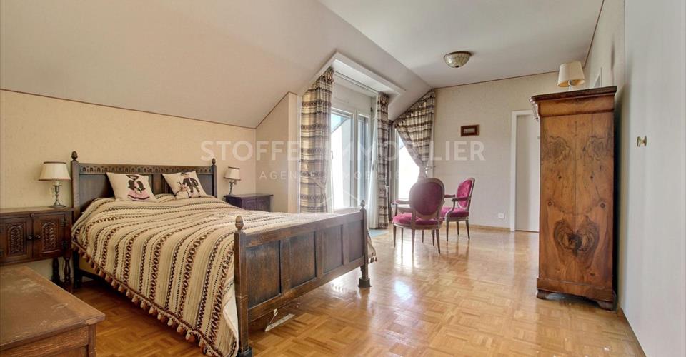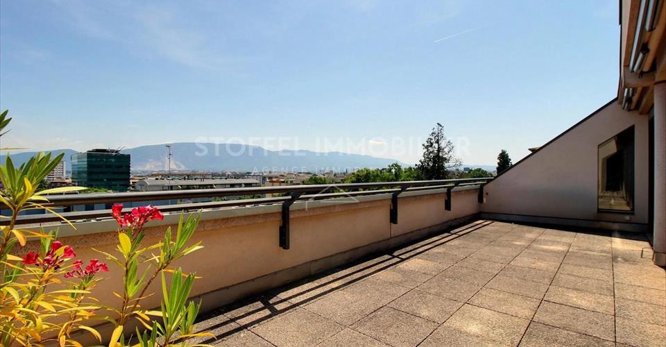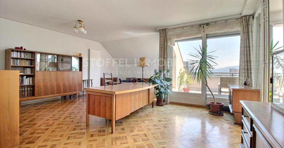 Idéalement situé au coeur du Petit-Saconnex, cet appartement combine calme et confort dans un environnement verdoyant, tout en étant à proximité des organisations internationales, des écoles, des transports publics et des commerces. À seulement quelques minutes du centre-ville et de l’aéroport, son emplacement idéal en fait une adresse recherchée. Situé au dernier étage de l’immeuble (6ème), cet appartement de 7 pièces offre une surface habitable d’env. 234 m2 ainsi qu’une belle terrasse de 27 m2 et 4 balcons totalisant 24 m2. Composé de deux entrées, cet attique offre une vue dégagée imprenable et se compose notamment d’un lumineux salon, d’une salle à manger séparée, d’un bureau, d’une véranda chauffée, d’une cuisine équipée avec espace repas, de deux à trois chambres à coucher ainsi que de deux salles de bains. Cette résidence de standing est composée également d’une piscine intérieure (avec sauna, vestiaire et douche), d’un beau jardin commun paysagé ainsi que d’une cour avec nombreuses places de parking visiteurs. Une grande cave, un box et une place de parking au sous-sol viennent compléter l’ensemble de ce spacieux attique. Disponibilité à convenir (rapide possible). Vente en PPE.