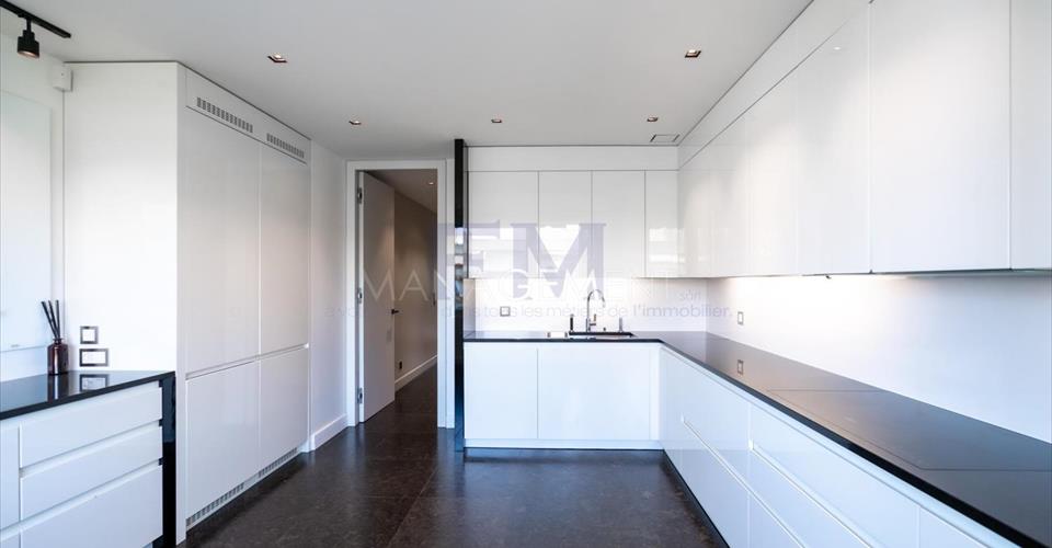 À vendre : appartement d’exception à Florissant Découvrez ce magnifique appartement contemporain idéalement situé dans le quartier résidentiel prisé de Florissant, à quelques pas du paisible Parc Bertrand. Profitez d’un cadre de vie verdoyant et tranquille au sein d’un immeuble soigné et sécurisé, agrémenté d’une piscine extérieure commune réservée aux résidents de cet immeuble en PPE. Perché au 6e étage, cet appartement offre une vue dégagée sur le Salève et a été conçu avec des matériaux de haut standing. Détails de la disposition intérieure : – Hall d’entrée accueillant avec vestiaire et WC visiteurs – Grande cuisine entièrement agencée et équipée – Spacieux séjour lumineux avec salon et salle à manger – Agréable balcon accessible depuis la pièce de vie – Deux chambres master, chacune avec leur propre salle de bain, dont une avec double dressing et balcon privé – Deux chambres supplémentaires idéales pour la famille ou les invités – Une troisième salle de bain pour un confort optimal – Buanderie indépendante Ce bien est également doté d’une cave et bénéficie de l’accès à l’ascenseur de l’immeuble. Prix : Fr 3’650 000.- Disponibilité : Immédiate Prix du Box garage: CHF 100’000.- Pour toute demande de renseignement ou de visite, contactez-nous au ou par courriel à en précisant vos coordonnées téléphoniques. Après votre visite, si vous souhaitez réserver cet appartement, téléchargez le formulaire de réservation d’achat dans notre section “FORMULAIRES” sur www.fm-management.ch et renvoyez-le à