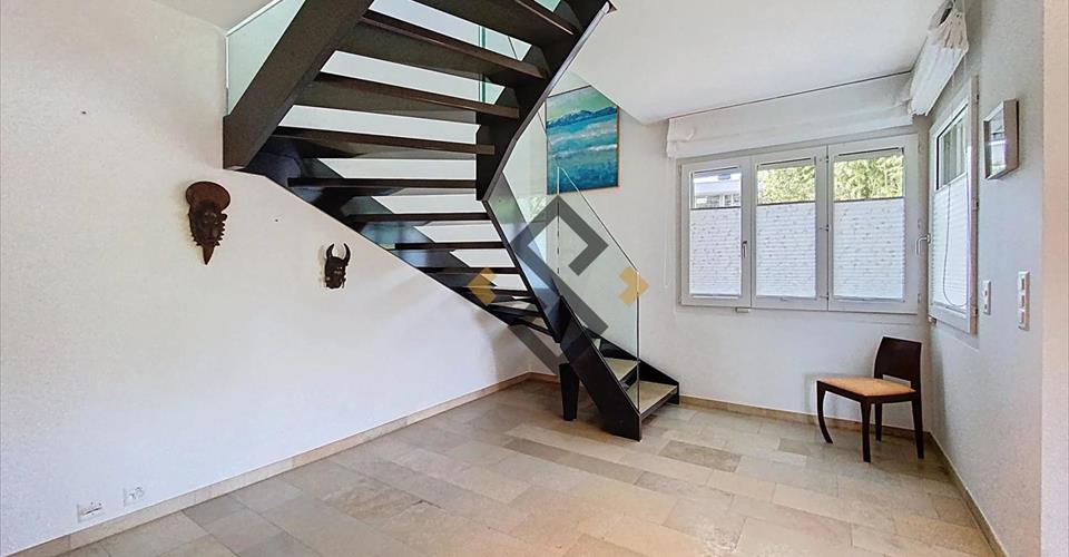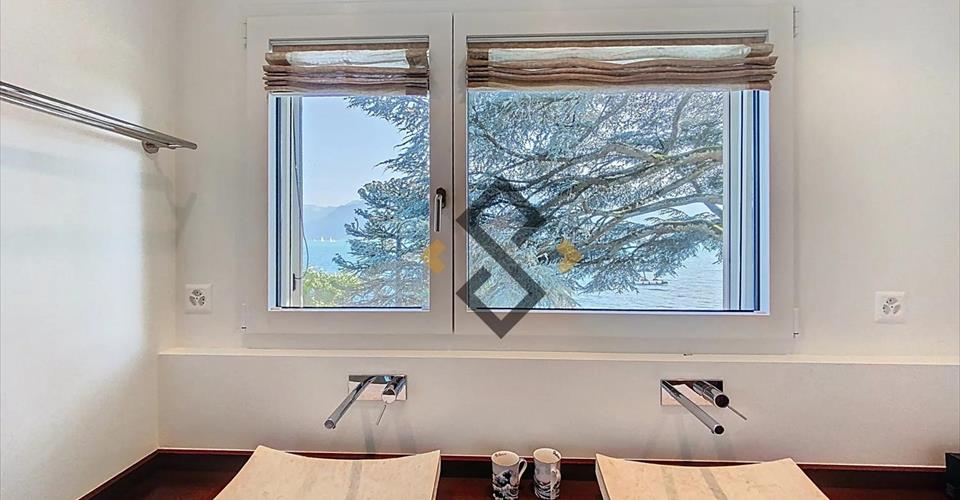 Vivre littéralement au bord de l’eau ? un luxe absolu que vous offre ce splendide duplex de 6.5 pièces d’environ 212 m² habitables. Dans un cadre aussi exclusif qu’apaisant, cette propriété rare conjugue élégance discrétion et art de vivre. Situé dans une copropriété de haut standing, au sein d’un environnement paisible et verdoyant, ce bien a été entièrement rénové avec des matériaux nobles dans une esthétique contemporaine soignée. Baigné de lumière naturelle, il séduit par ses généreux volumes et sa fluidité intérieure. Le jardin arboré, intime et parfaitement entretenu, prolonge l’espace de vie jusqu’à la rive offrant un accès direct et privatif au lac ? avec un rail à bateau qui en souligne le caractère unique. La configuration actuelle permet en outre une division en deux logements, une option précieuse pour les investisseurs. Disposition générale de l’appartement : Rez-de-chaussée : – Hall d’entrée avec armoire murale – Cuisine ouverte sur la salle à manger et séjour avec cheminée au centre de la pièce – Bureau/chambre – Salle de douche – WC – Terrasse avec accès au jardin et au lac Etage : – 2 suites parentales avec dressing et salle de douche donnant accès à un balcon – 2 chambres – Salle de bain avec baignoire balneo – Salle de douche – Buanderie – Grand Balcon Information complémentaires : – 3 places de parc intérieures CHF 40’000.- chacune NON inclus dans le prix de vente – 1 place de parc extérieure CHF 10’000.- NON inclus dans le prix de vente – 1 borne de recharge pour voiture électrique – 1 rail à bateau CHF 80’000.- NON inclus dans le prix de vente – Magnifique jardin avec accès direct au lac Une adresse confidentielle pour amateurs d’exception!