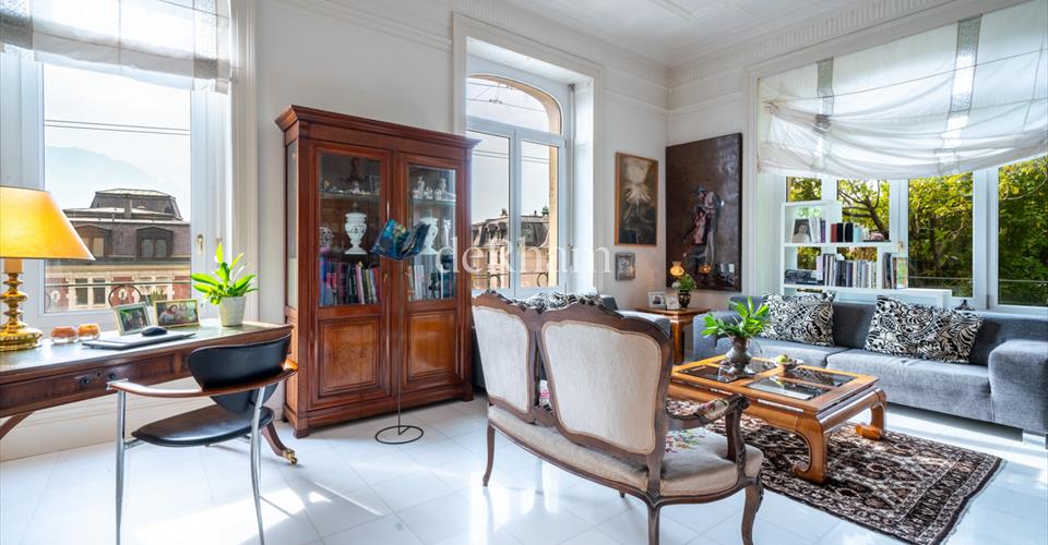 – EN EXCLUSIVITE – Situé dans la célèbre Résidence “Riant-Château”, ce magnifique appartement bénéficie d’une excellente situation à proximité immédiate du centre-ville de Montreux et de ses nombreux commerces. Les rives du lac avec ses magnifiques quais fleuris se trouvent à quelques pas. Ce bien d’exception, alliant charme et élégance saura vous séduire grâce à sa situation ainsi que ses belles hauteurs sous plafonds. L’appartement est composé comme suit : – Vaste hall d’entrée – Chambre/bureau – Spacieux séjour avec salle à manger offrant un accès direct à la terrasse – Cuisine entièrement agencée jouissant d’une grande terrasse/véranda en prolongement – 3 chambres à coucher dont une avec sa salle de bain – Salle de bains/WC/lavabo – WC visiteur Une place de parc intérieure au prix de CHF 45’000.- ainsi qu’une cave complètent ce bien. Il est à noter qu’un rooftop commun jouissant d’une vue à couper le souffle est à votre disposition
