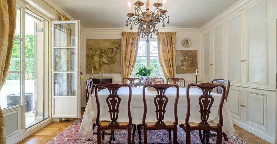 Ce superbe appartement de 7 pièces se trouve au rez-de-chaussée d’une résidence de luxe, au calme absolu, à Vandoeuvres, à proximité immédiate de Cologny. Le bien offre une surface PPE d’environ 250 m², complétée par une grande terrasse de près de 250 m². La partie jour propose un hall d’entrée, un WC visiteurs avec vestiaires, une belle cuisine entièrement équipée et aménagée ainsi qu’un grand salon et une jolie salle à manger. La partie nuit se compose d’une master bedroom avec salle de bains et dressing en suite. 2 chambres, une chambrette, ainsi qu’une salle de bains, une salle de douche et une buanderie s’ajoutent à cette partie. Toutes les pièces de l’appartement bénéficient d’un accès à la terrasse. Le bien profite également d’un jardin d’hiver. Cette belle résidence, sécurisée et privative, jouit d’une belle piscine intérieure et d’un agréable parc. Une cave et deux places de parc intérieures viennent parfaire ce bien de qualité.