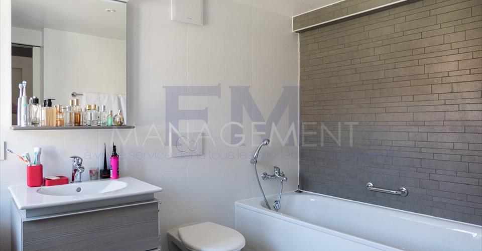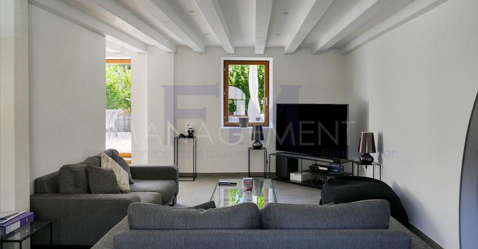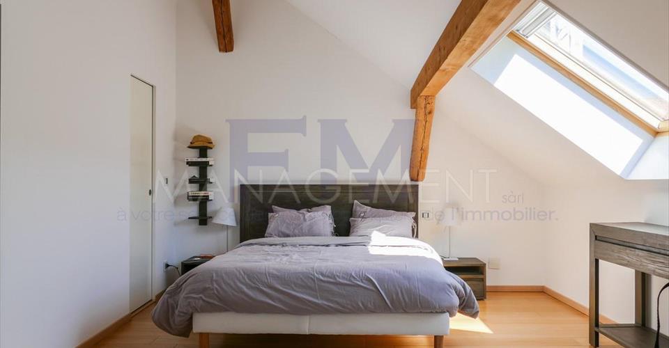 Situé à quelques minutes du lac, dans le village de Vésenaz, ce Triplex de haut standing offre une surface habitable d’environ 270 m2 répartis de la façon suivante : Au rez-de-chaussée : une cuisine agencée et équipée, une salle à manger, un salon, un local buanderie, un WC visiteurs et une grande terrasse arborée d’env. 70m2. Au 1er étage : trois chambres dont deux chambres se partagent une belle salle de bains et une grande chambre master avec sa propre salle de douche à l’italienne. Au 2ème étage : une grande chambre, salle de bains privative, un dressing et une grande pièce à vivre. Sous-sol une grande cave et deux places de parking intérieures complètent ce bien exceptionnel. Loyer mensuel : CHF 7’000.– / Charges CHF 600.- Disponible de suite. A louer non meublé Pour tout renseignement ou demande de visite, vous pouvez contacter directement notre service location. Après votre visite, en cas d’intérêt à louer l’objet, retrouvez l’annonce sur notre site web www.fm-management.ch et cliquez sur le lien “Inscription en ligne” pour soumettre votre dossier d’inscription directement en ligne; ou alors téléchargez le formulaire d’inscription intitulé « demande de location pour appartement » disponible sous l’onglet «formulaires» et, une fois complété, renvoyez-le avec ses annexes à notre adresse.