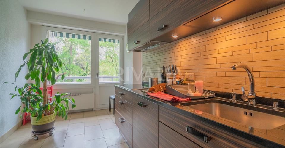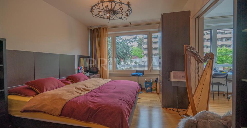 Situé dans le quartier prisé de Florissant, au rez-de-chaussée supérieur d’un immeuble de standing, ce magnifique appartement traversant d’environ 185 m2 se compose de 7 pièces, dont 4 chambres à coucher. Traversant, il profite de deux balcons totalisant une surface d’environ 26 m2 et d’un environnement calme et verdoyant. Entretenu avec soin, cet appartement offre des prestations de qualité telles que cuisine entièrement agencée et équipée, dressing, triple vitrage, stores électriques ou encore porte blindée. Il se distribue comme suit : – Hall d’entrée – WC visiteurs avec colonne lavante/ séchante – Double séjour en enfilade donnant sur deux balcons – Cuisine fermée agencée et équipée, avec coin repas, accès balcon – Chambre parentale – Salle de bains avec WC – 3 chambres à coucher – Réduit – Salle de douche avec WC L’immeuble, entretenu avec soin est sécurisé et dispose d’un concierge à demeure. Un box en sous-sol pour un véhicule (en sus à 350.- / mois) et une cave viennent compléter l’ensemble. Situation idéale à proximité immédiate à pieds de l’ensemble des commodités (commerces, banque, cafés, restaurants, etc), des transports publics et du Parc Bertrand. Le centre ville ainsi que l’Ecole Internationale de la Grand-Boissière sont à quelques minutes. Charges en sus à 350.- / mois.