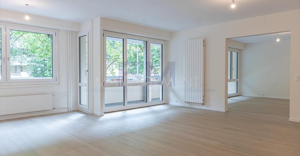 Situé dans une rue calme, non loin du parc Bertrand, des commerces et des transports en commun, nous vous proposons un magnifique appartement de 7 pièces d’environ 180 m2, au 1er étage d’un immeuble en PPE de standing et sécurisé. Entièrement rénové avec des matériaux de qualité, il se compose d’un grand hall d’entrée avec armoire de rangement, d’une cuisine agencée et équipée ouverte sur une salle à manger, d’un séjour avec accès à la première loggia, de deux chambres à coucher, chacune avec accès à la seconde loggia, d’une suite parentale disposant d’un dressing et d’une salle de douches avec double lavabo, d’une seconde salle de douche et d’un WC visiteurs. Une cave et un garage complète ce bien d’exception. Loyer mensuel : CHF. 6’700.- (charges CHF. 500.-) Disponible de suite. Pour toute demande de visite, nous vous prions bien vouloir contacter notre service location afin de convenir d’un rendez-vous. Après votre visite, en cas d’intérêt à louer l’objet, téléchargez le formulaire d’inscription intitulé « demande de location pour appartement » disponible sous l’onglet « location » et, une fois complété, renvoyez-le avec ses annexes à notre adresse