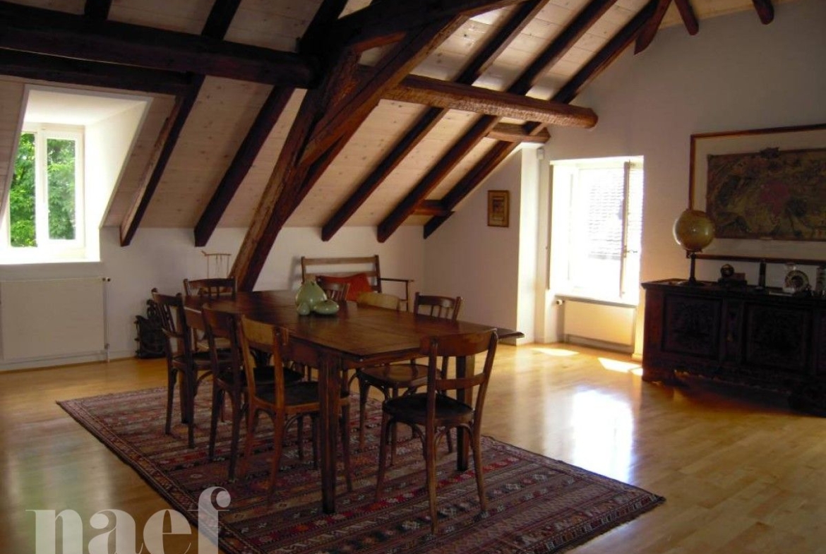 Situé sur la charmante commune de Prégny-Chambésy, à proximité des organisations internationales et du lac Léman, nous proposons un bel appartement en duplex de 7 pièces. Au 1er et 2ème étage d’une ancienne maison de maître rénovée, il se répartit comme suit :