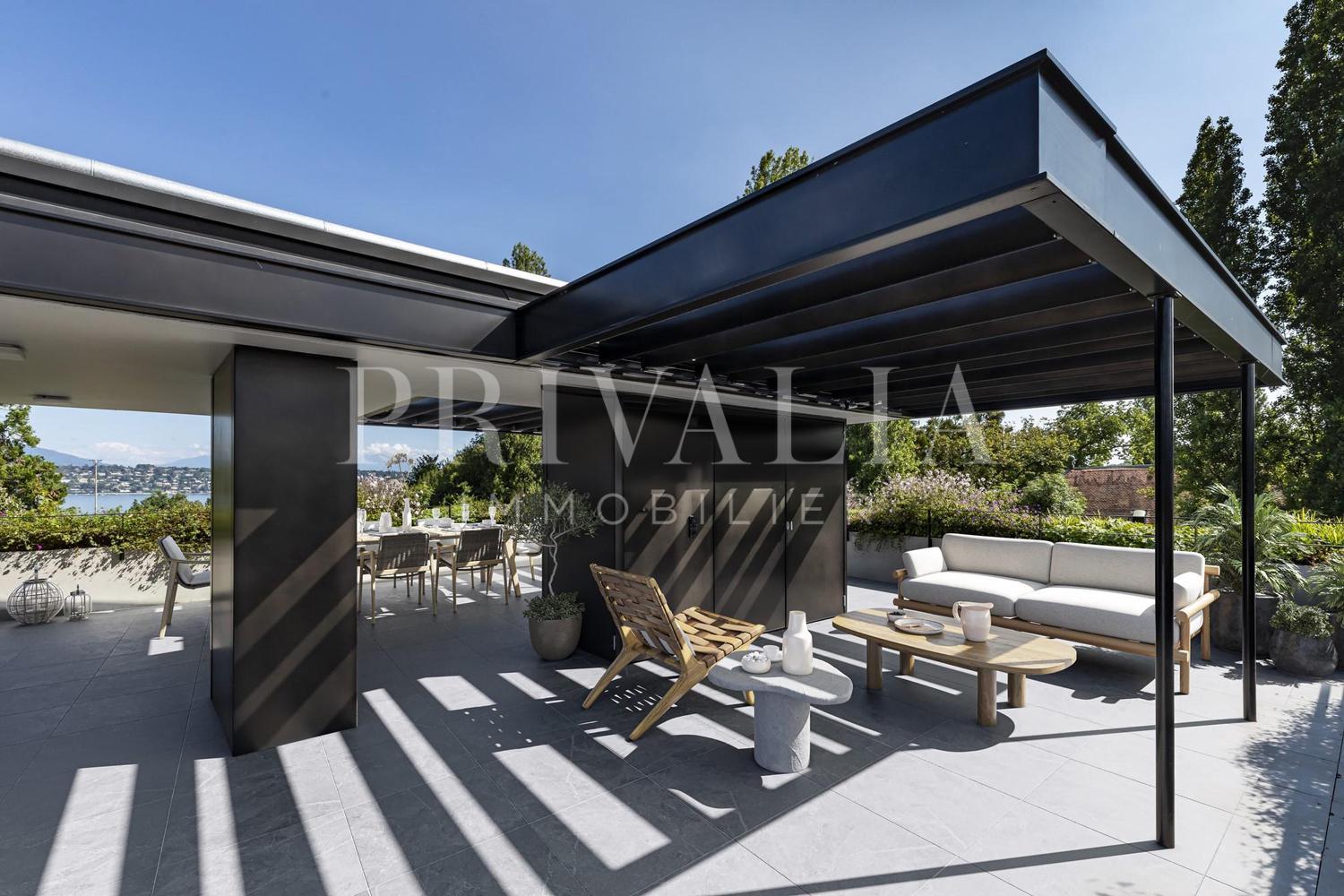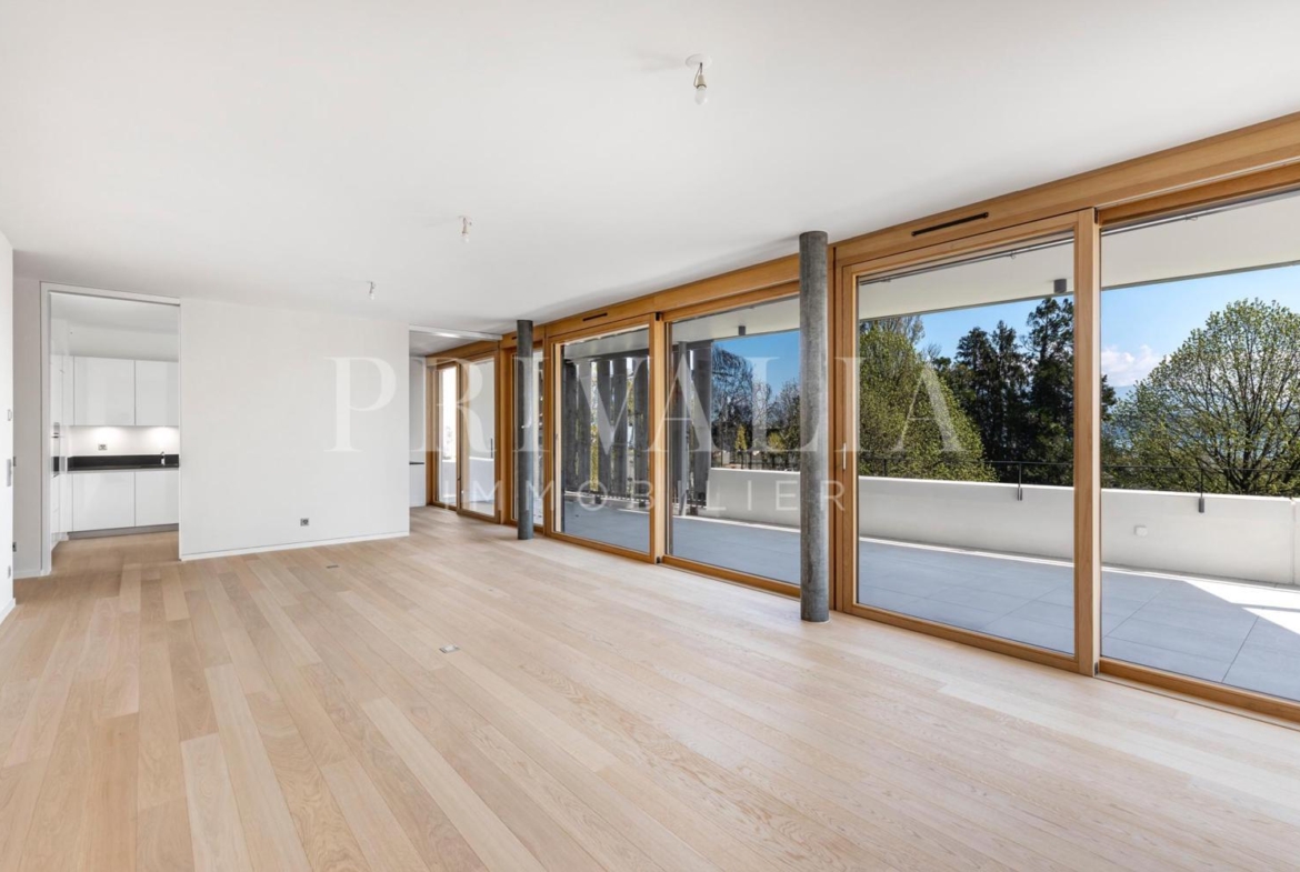 Au sein d’une nouvelle résidence de très haut standing “LE CINQ”, il bénéficie d’une architecture contemporaine avec toiture végétalisée. Cet appartement contemporain et fonctionnel dispose de beaux espaces et profite de matériaux de haute qualité tels qu’une cuisine ouverte entièrement équipée et agencée, salles d’eau modernes, chauffage au sol ou encore baies vitrées coulissantes. Par ailleurs, il bénéficie d’une belle terrasse en rooftop d’environ 102 m2 disposant d’une cuisine d’été et pergola, puis offrant une vue dégagée sur le lac et le Mont-Blanc.