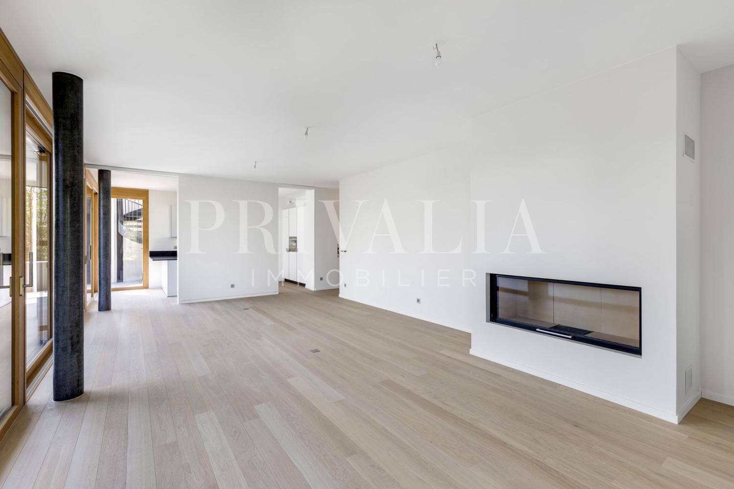 – Vaste séjour / salle à manger avec cheminée, accès terrasse privative