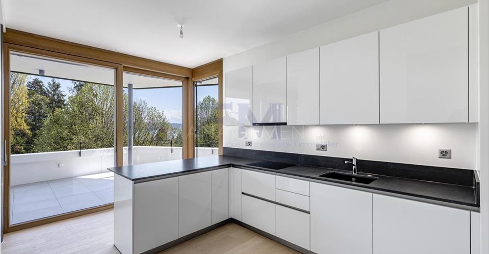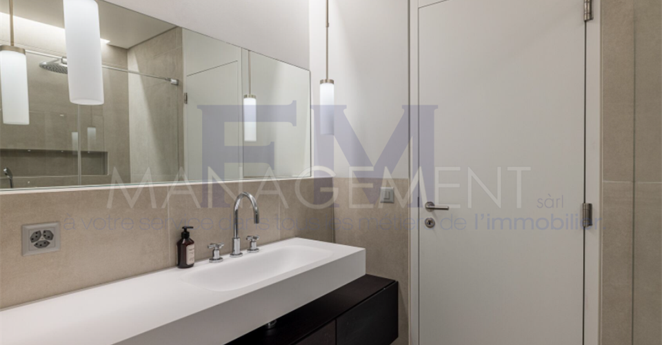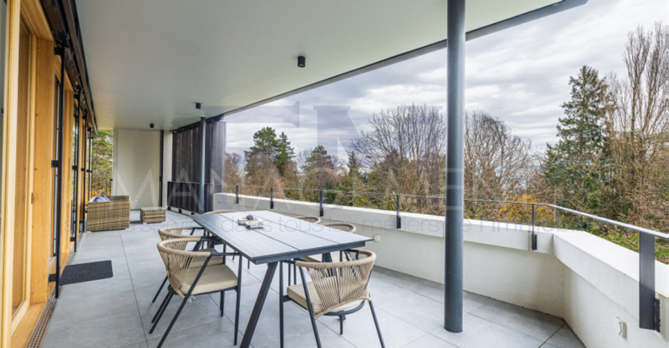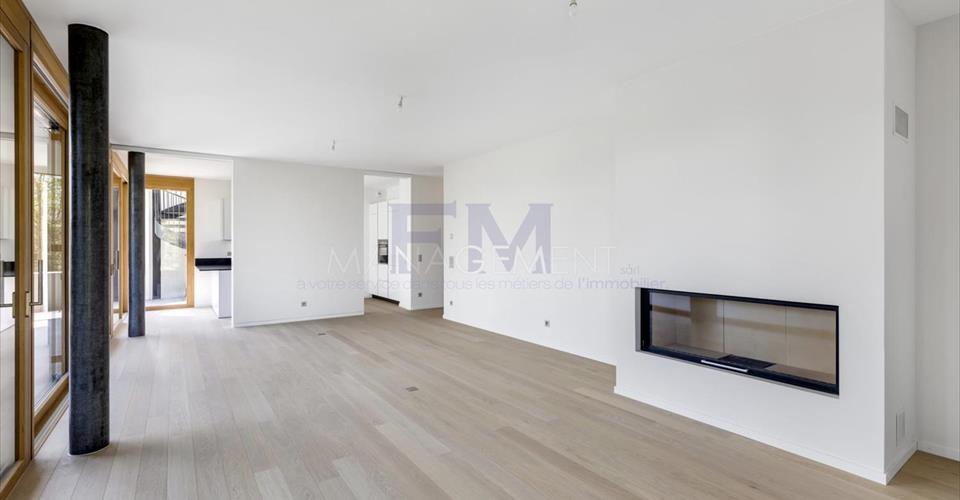 Découvrez ce superbe attique de 7 pièces et environ 244m2 PPE, avec terrasses couvertes et grande terrasse aménagée en toiture, dans un nouvel immeuble (Rez +2) de très haut standing, au standard THPE, idéalement situé au coeur d’un quartier résidentiel, calme et exclusif, de la très prisée commune de Pregny-Chambésy, à proximité immédiate du lac Léman, des organisations internationales et de l’aéroport. Il se compose comme suit (liste non exhaustive) : 1er étage : ? Grand Hall d’entrée avec escalier accès deuxième étage, ? Chambre Master avec terrasse privative et salle de bains privative avec douche italienne, WC et doubles vasques, ? Deux chambres à coucher avec salle de douches traversante avec douche italienne, WC et lavabo. 2ème étage : ? Grand hall d’entrée, avec vestiaire et WC Visiteurs, ? Grande cuisine entièrement agencée et équipée avec ilot, ? Vaste séjour avec cheminée et salle-à-manger avec terrasse d’environ 41m2 et escalier d’accès direct à la terrasse privative en toiture, ? Chambre Master avec terrasse privative couverte, grand dressing, grande salle de bains privative avec douche italienne, baignoire, WC et doubles vasques, ? Deuxième chambre à coucher avec grand dressing privatif et salle de douches privative avec douche italienne, WC et doubles vasques, ? Buanderie avec armoires de rangement, ?Exposition sud-ouest, vue lac et luminosité optimale. Toiture : ? Terrasse en toiture (avec escalier et accès direct) d’env. 102 m2 (terrasse couverte d’environ 60m2 avec pergola et terrasse non couverte d’environ 42m2) aménagée avec cuisine d’été, pergola et concept d’éclairage. 3 places de parking intérieures et 1 cave privative complète ce bien d’exception. Loyer mensuel : CHF 15’000.- (charges et places de parkings compris) A louer non-meublé. Disponible immédiatement. Pour tout renseignement ou demande de visite, nous vous remercions de nous contacter par téléphone. Après votre visite, en cas d’intérêt à louer l’objet, retrouvez l’annonce sur notre site web www.fm-management.ch et téléchargez le formulaire d’inscription intitulé « demande de location pour appartement » disponible sous l’onglet «formulaires» et, une fois complété, renvoyez-le avec ses annexes à notre adresse