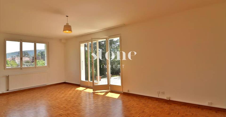 ATTENTION CET APPARTEMENT EST à LOUER UNIQUEMENT PAR L’INTERMEDIAIRE DE LA LOCATAIRE. DOSSIER COMPLET LORS DE LA VISITE ? CONTACTER ISALINE, de préférence par. Dossier complet exigé. 3 dernières fiches de paie, contrat de travail, permis si nécessaire, passeport ou carte d’identité. Cette villa de style classique de plain pied est idéalement située à Thônex, au bout d’un chemin sans issu, au calme, dans un quartier résidentiel. Elle bénéficie d’un immense et magnifique jardin avec une vue imprenable sur les Alpes. La maison se distribue ainsi : 1 entrée spacieuse, 1 grand séjour ensoleillé avec une porte fenêtre. La cuisine équipée et neuve est fermée sur le jardin avec accès direct, une terrasse en bois. Vous trouverez 3 chambres et salle de bains. Le jardin est vaste et ensoleillé (jeux pour enfants). Elle se situe à 5 minutes de l’école internationale, à 10 min des grands commerces et de l’autoroute. La maison a été rénovée en 2016. Net plus ultra : Vue sur Léman et les Alpes, très lumineux et en plus, un spacieux sous-sol équipé et chauffé. Idéal pour une famille Nombre de pièces : 7 Nombre de chambre : 3 chambres Nombre de salle de bains : 1 Parking : parking extérieur Chauffage : mazout Terrain : 1 Cave : 1 Sous-sol chauffé avec fenêtres : 1 Buanderie : 1 Garage : 1 Disponible : A CONVENIR AVEC LA LOCATAIRE/NOVEMBRE-DECEMBRE PRIX: 4800 CHF